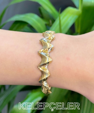 14 Ayar Altın ZigZag Kelepçe Bileklik