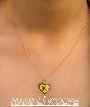 14 Ayar Altın Renkli Taşlı Kalp Kolye