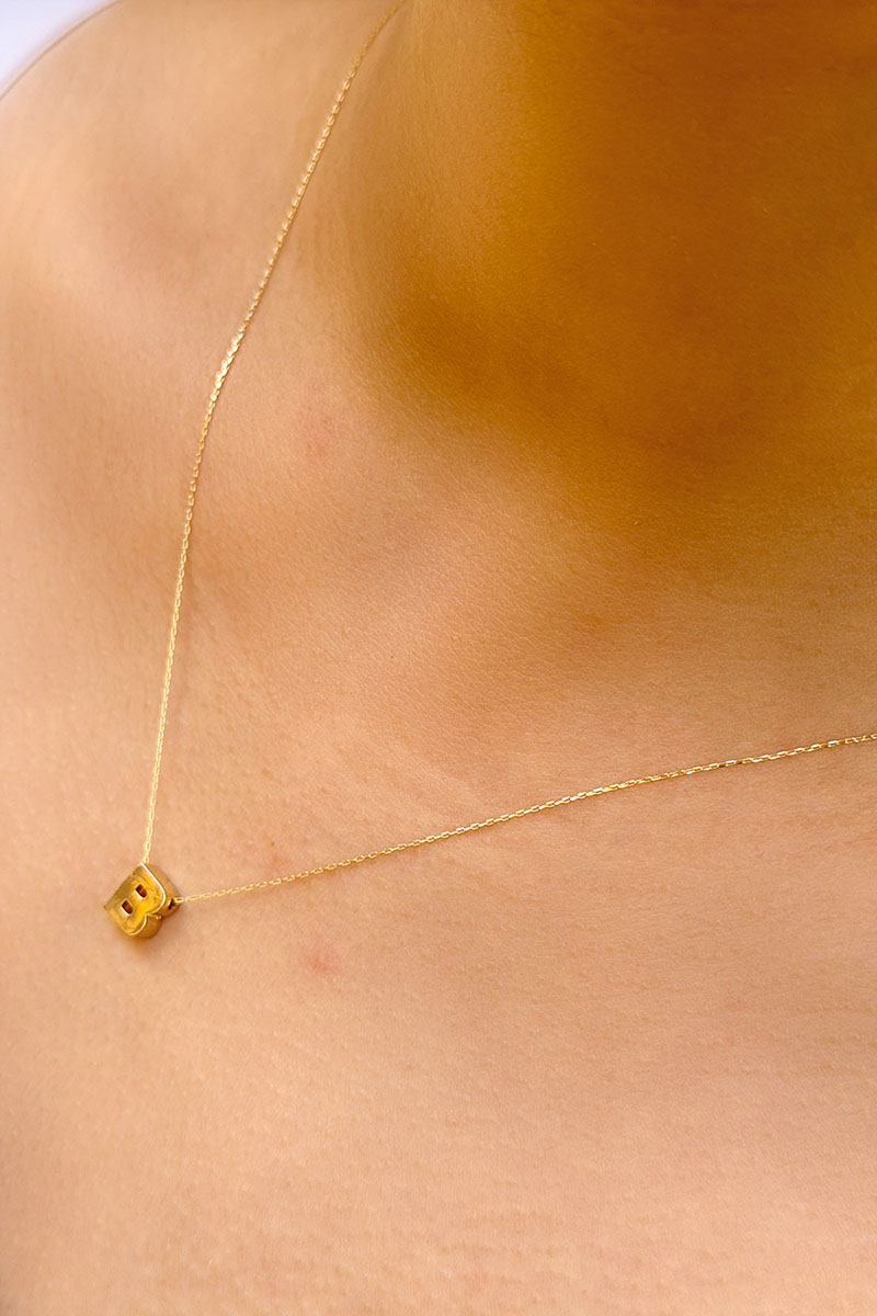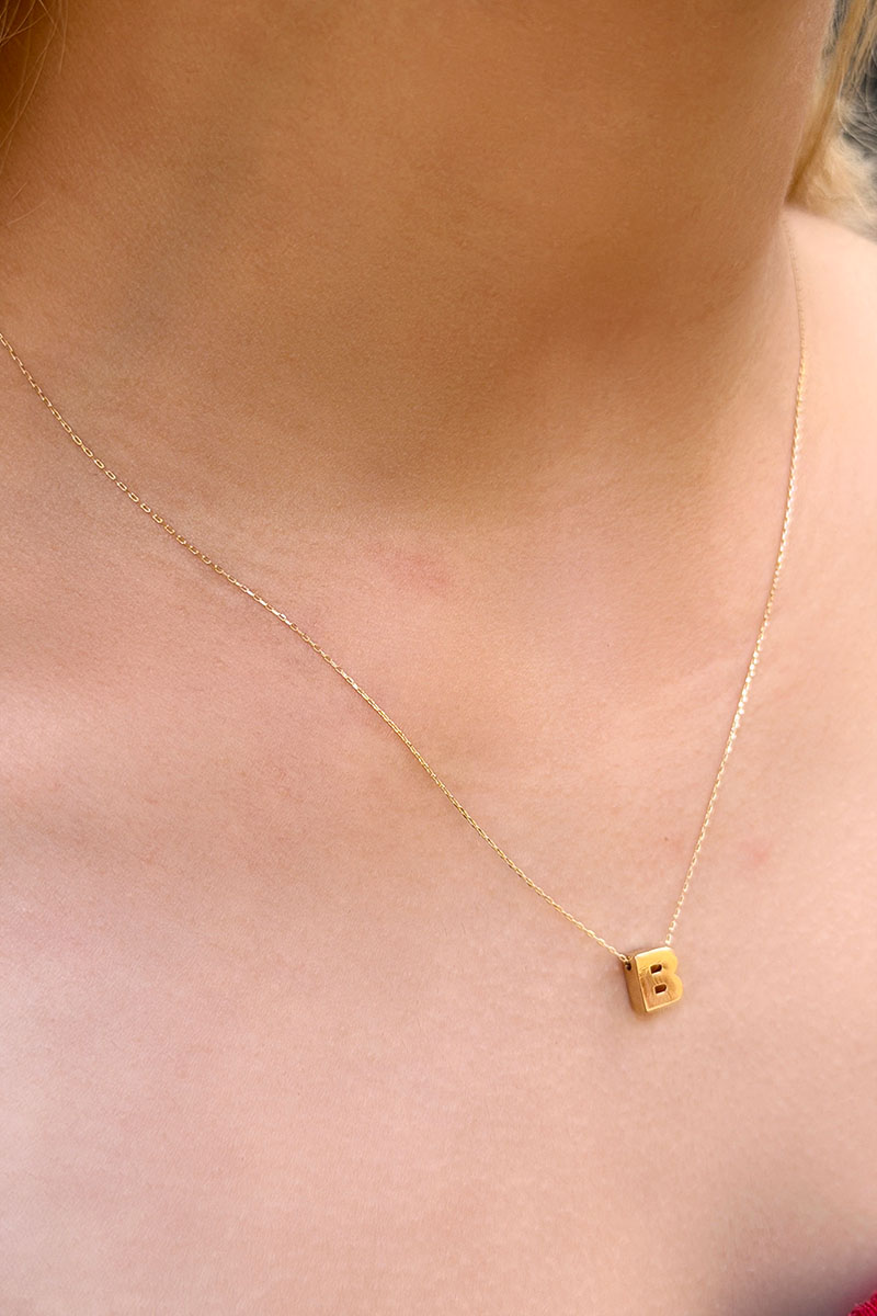 14 Ayar 3 Boyutlu B Harfli Kolye