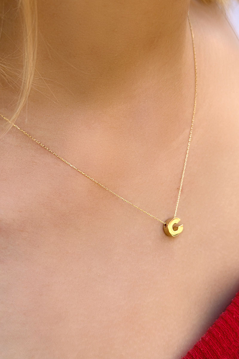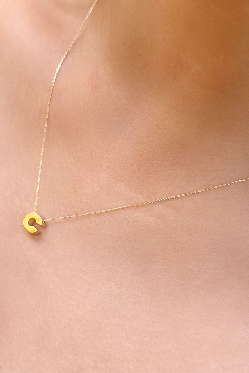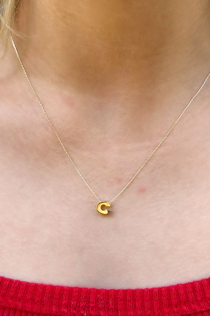 14 Ayar Altın 3 Boyutlu C Harfli Kolye