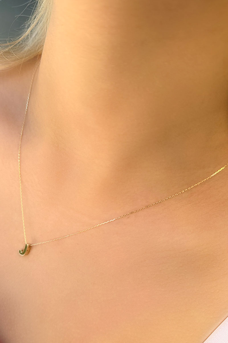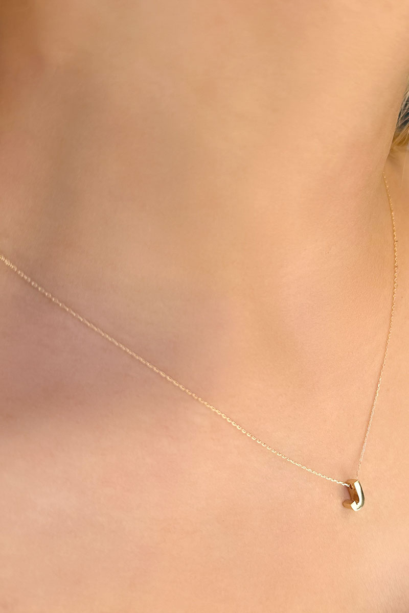 14 Ayar Altın 3 Boyutlu J Harfli Kolye