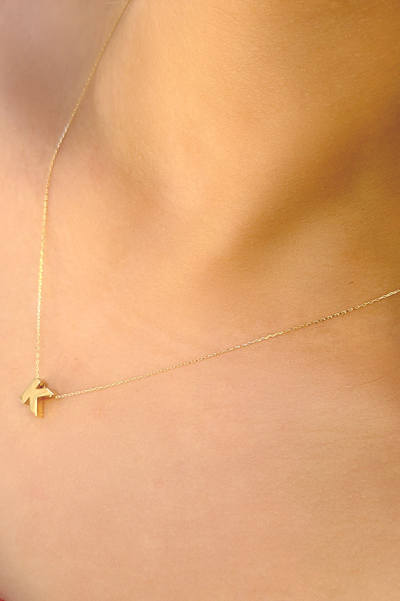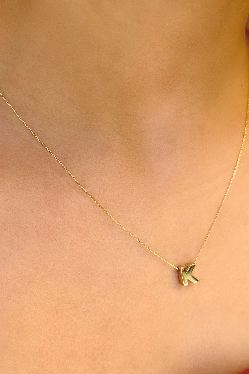 14 Ayar Altın 3 Boyutlu K Harfli Kolye