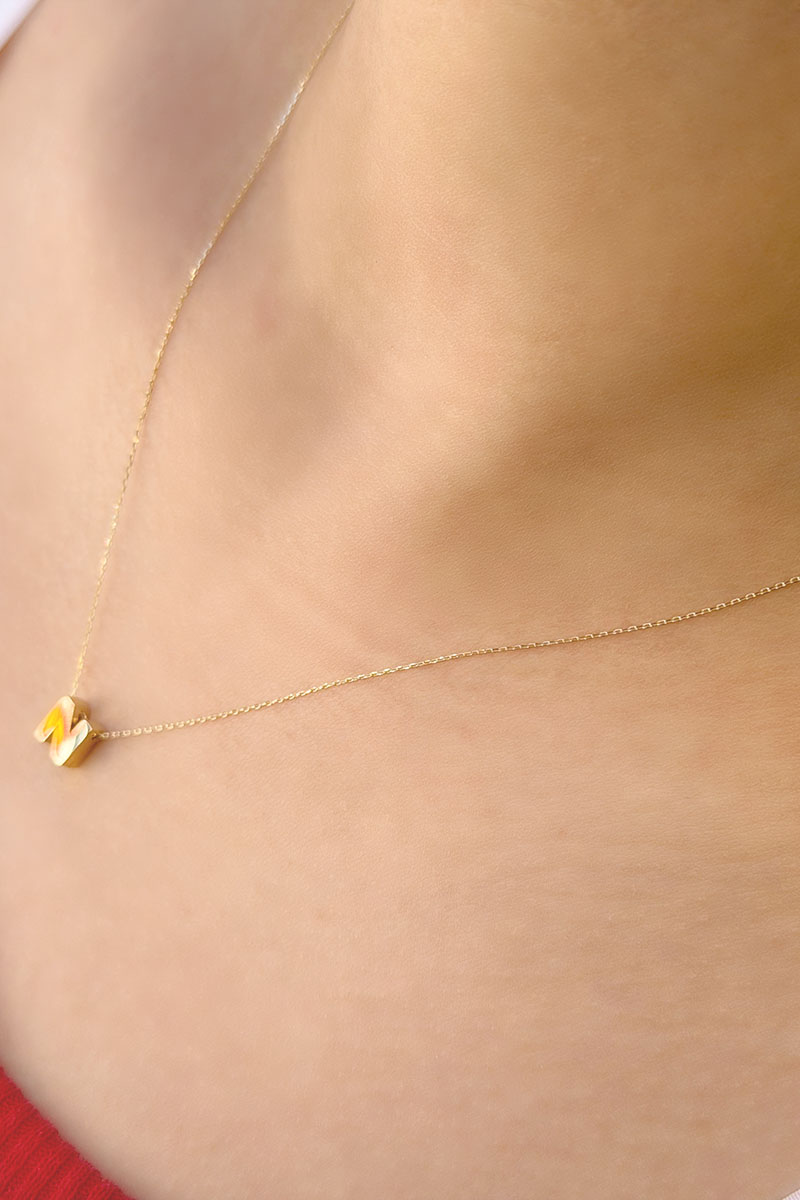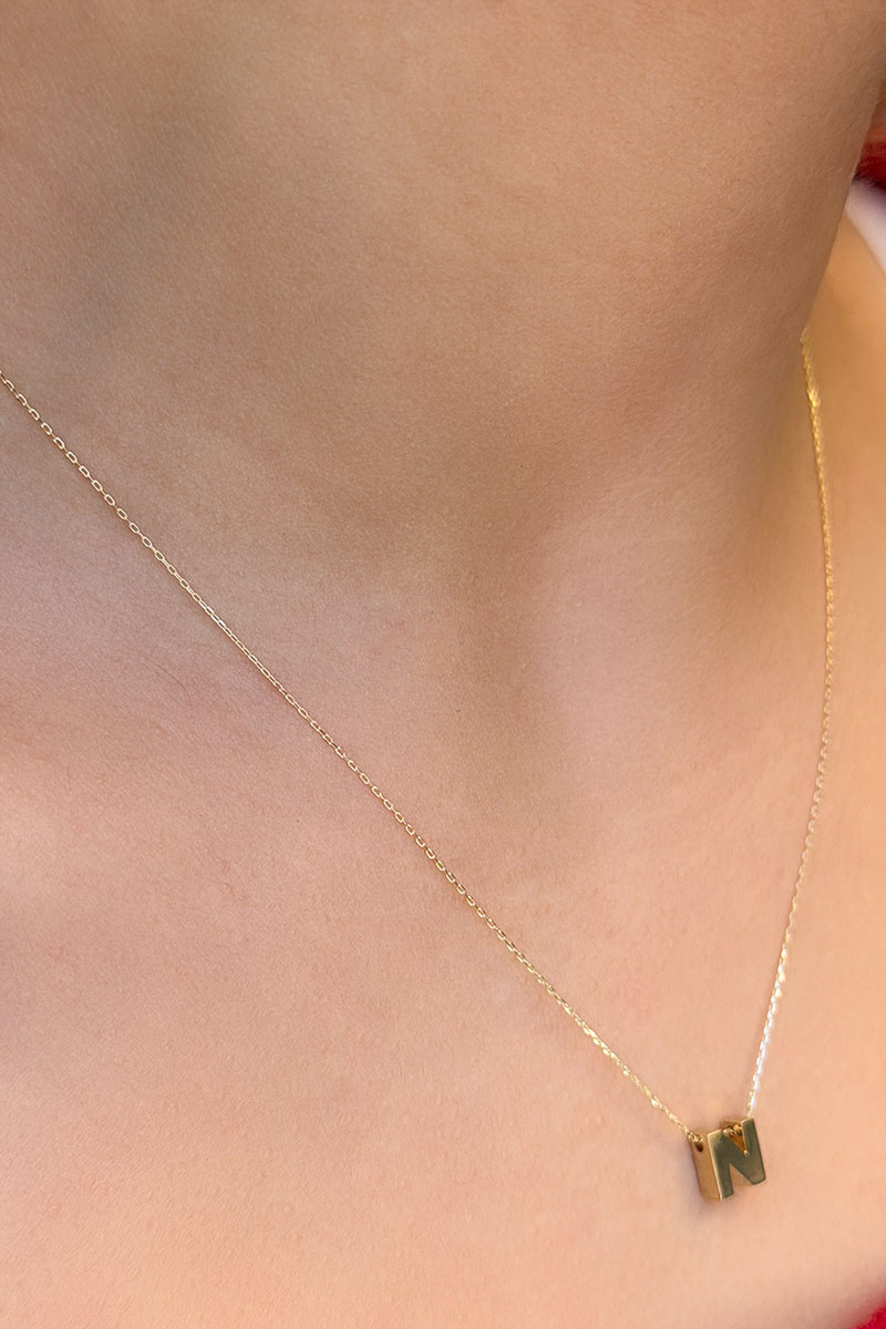 14 Ayar Altın 3 Boyutlu N Harfli Kolye