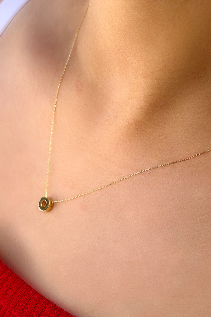 14 Ayar Altın 3 Boyutlu O Harfli Kolye