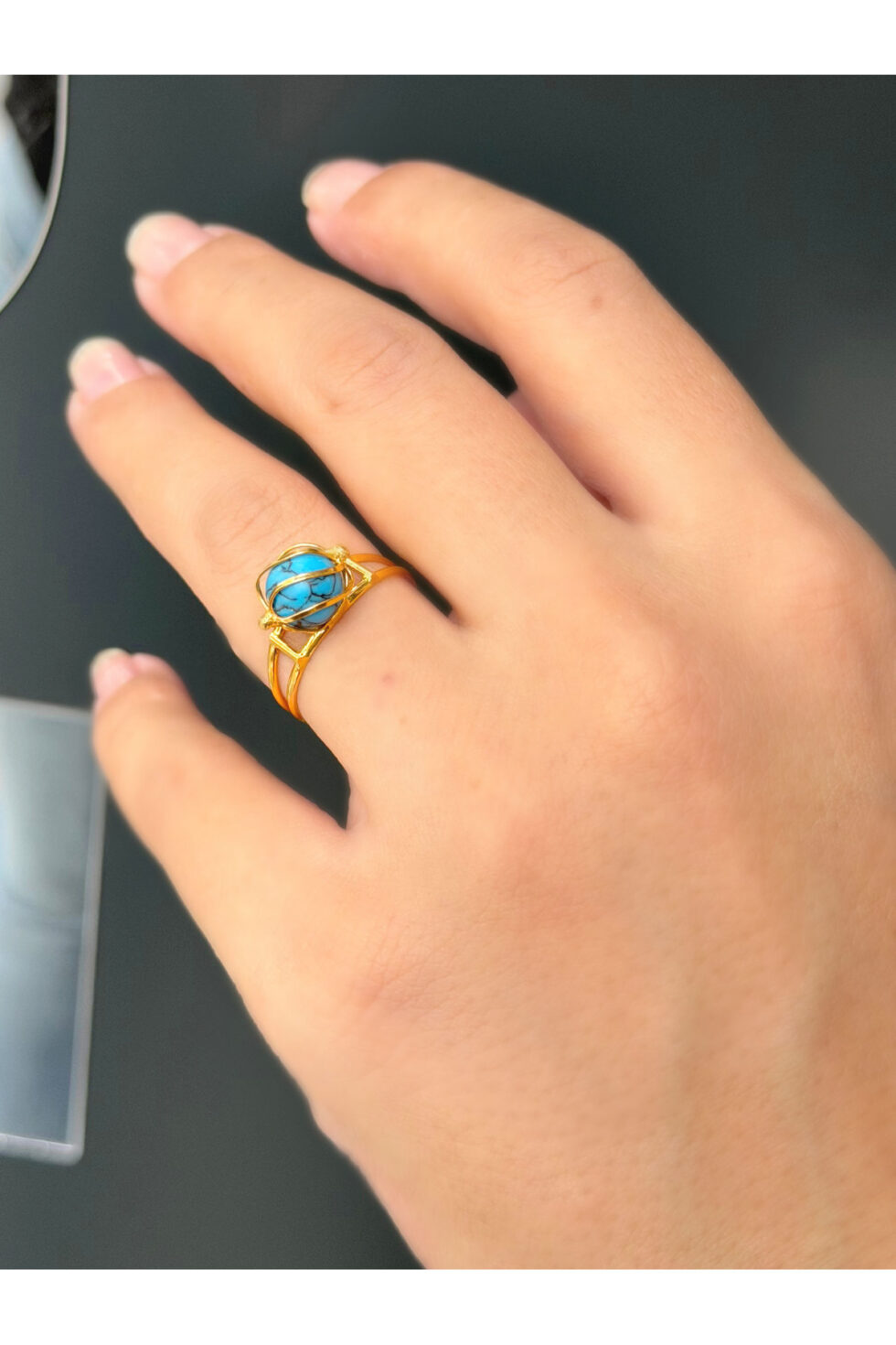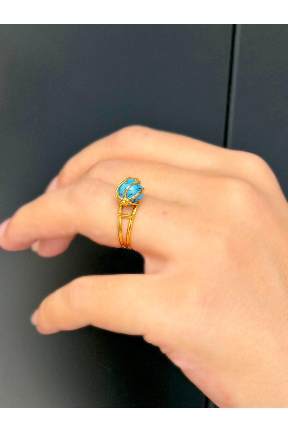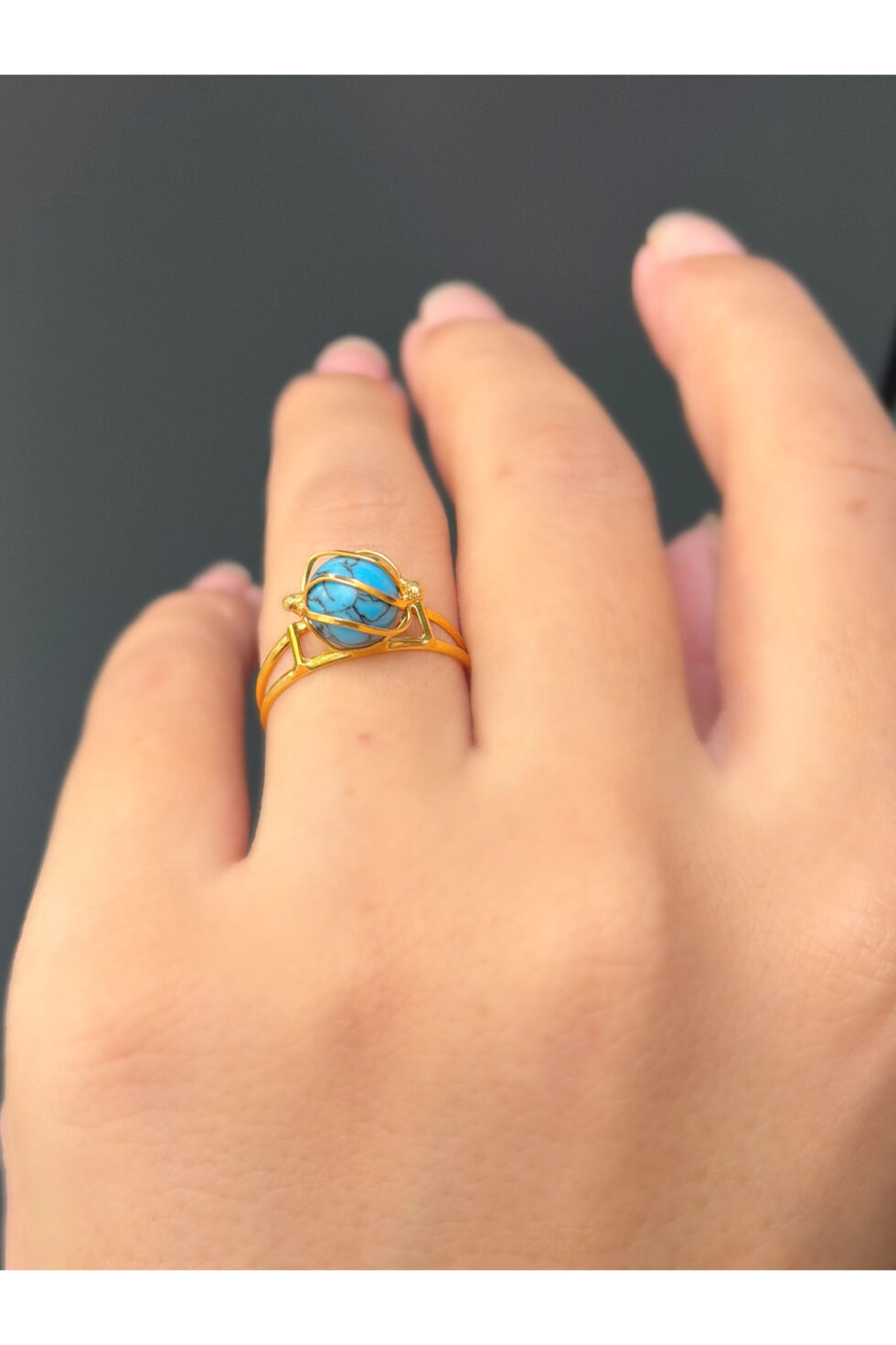 14 Ayar Altın Kafesli Firuze Taşlı Yüzük