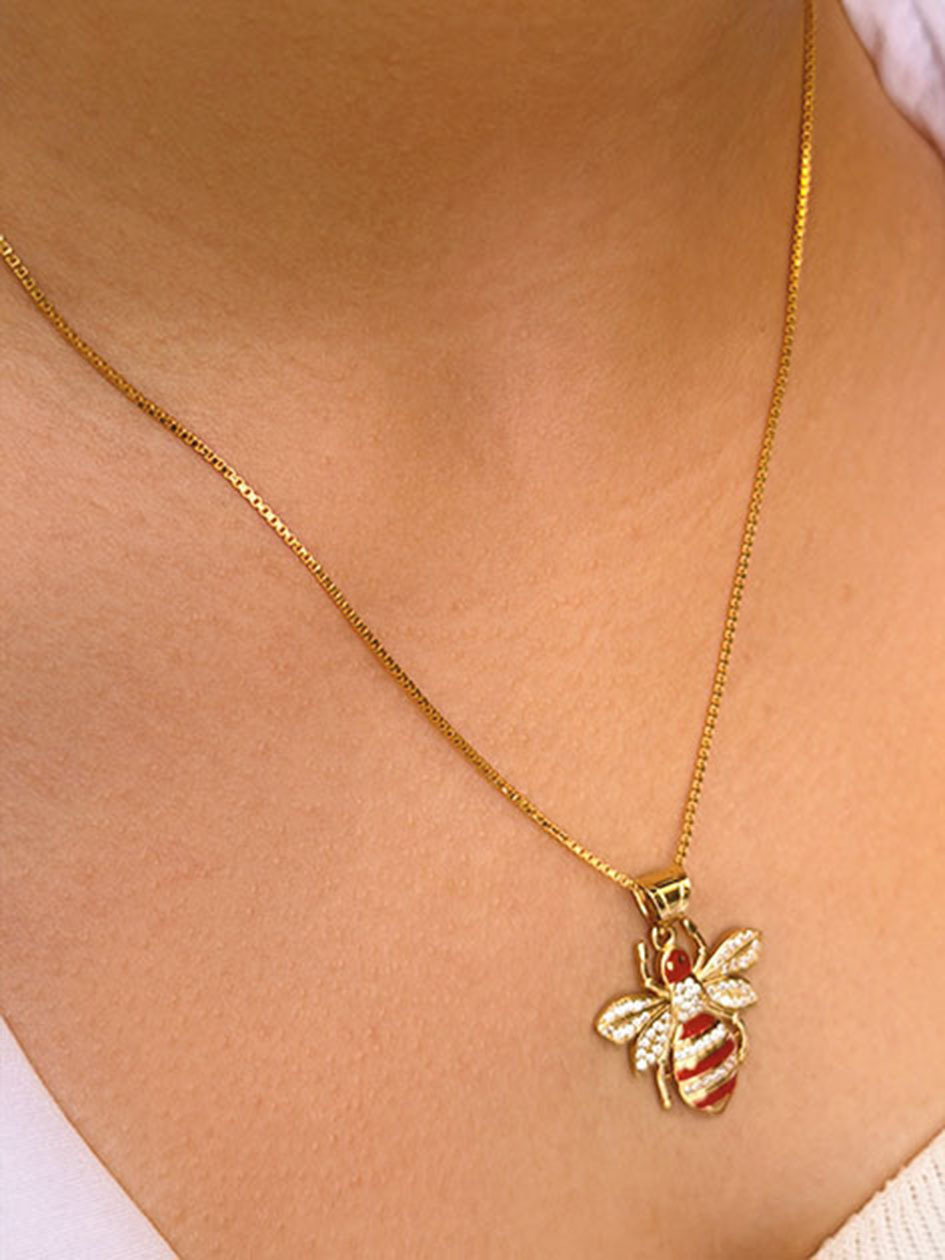 14 Ayar Altın Kırmızı Mineli Arı Kolye