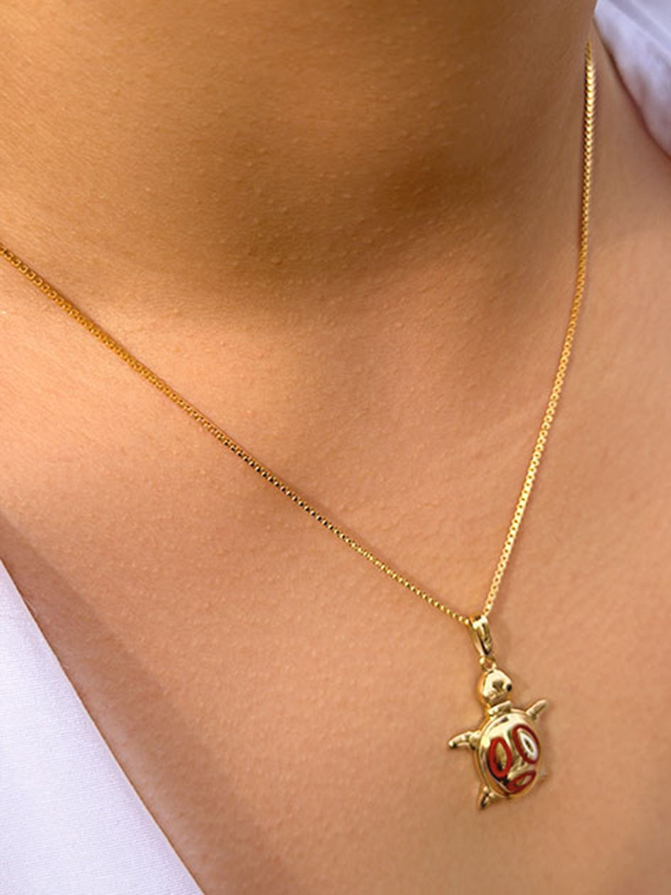 Bu ürün: 14 Ayar Altın Kırmızı Mineli Kaplunbağa Kolye