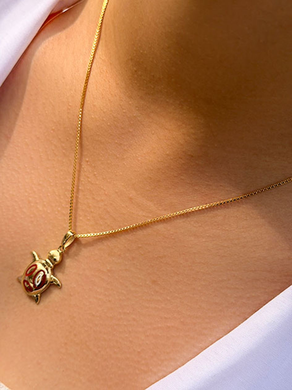 14 Ayar Altın Kırmızı Mineli Kaplunbağa Kolye