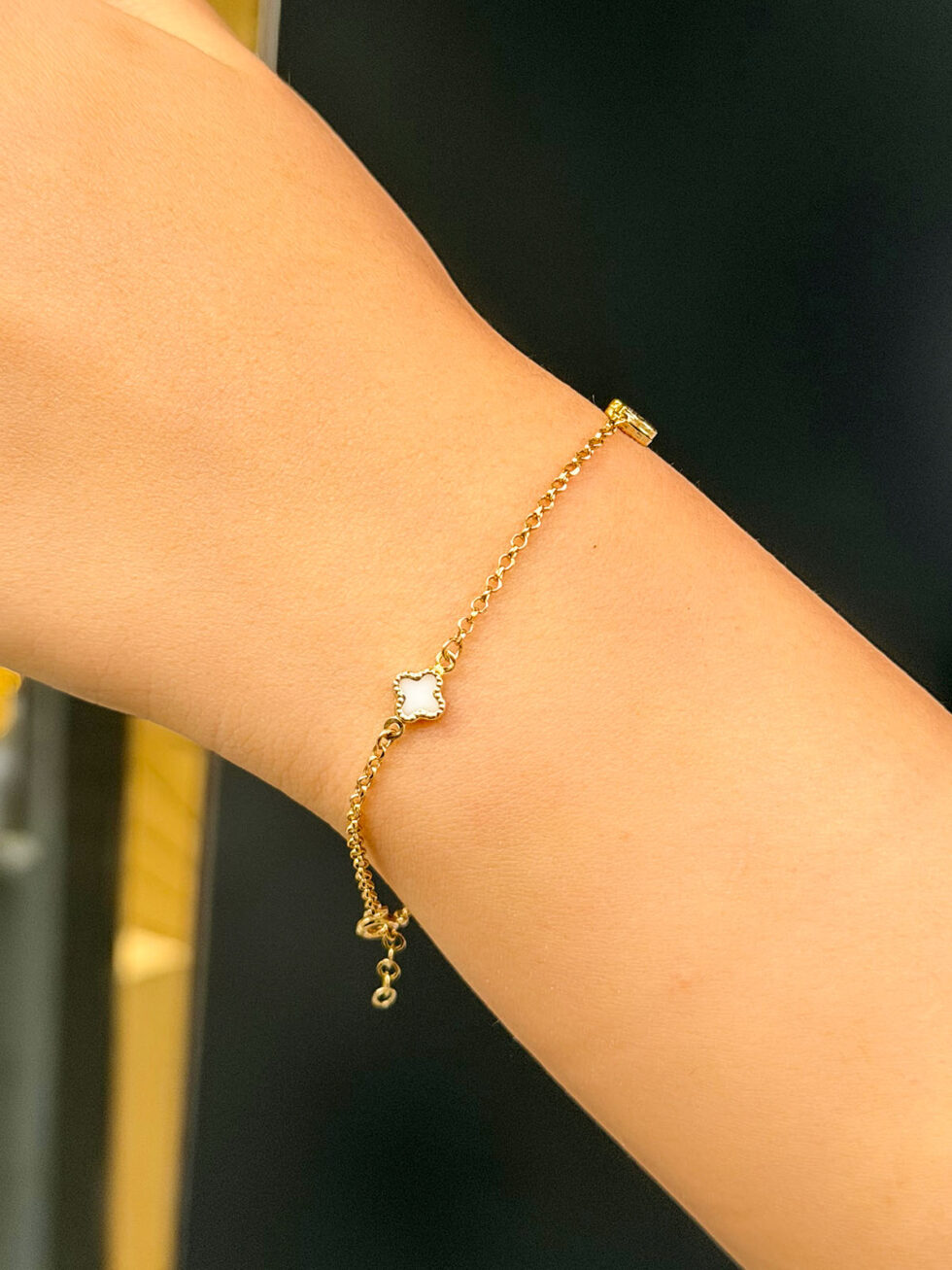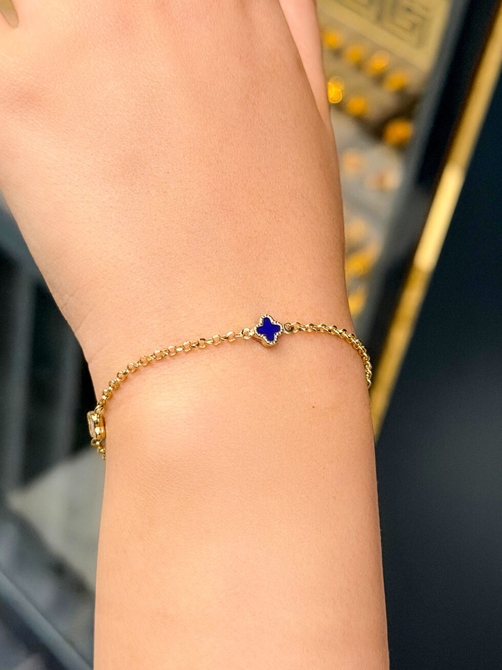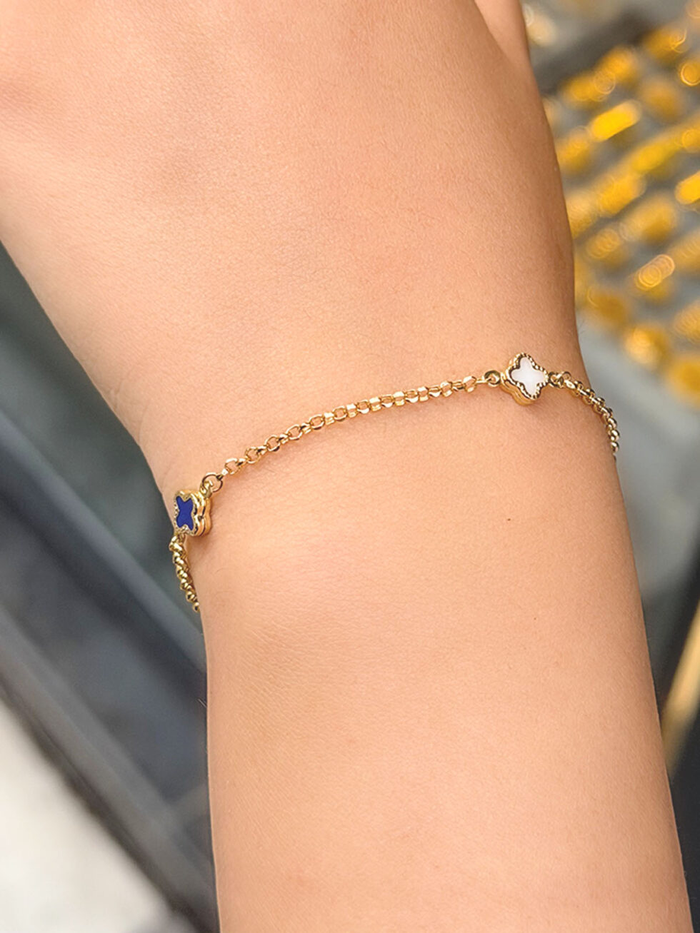 Bu ürün: 14 Ayar Altın Küçük Renkli Yonca Bileklik