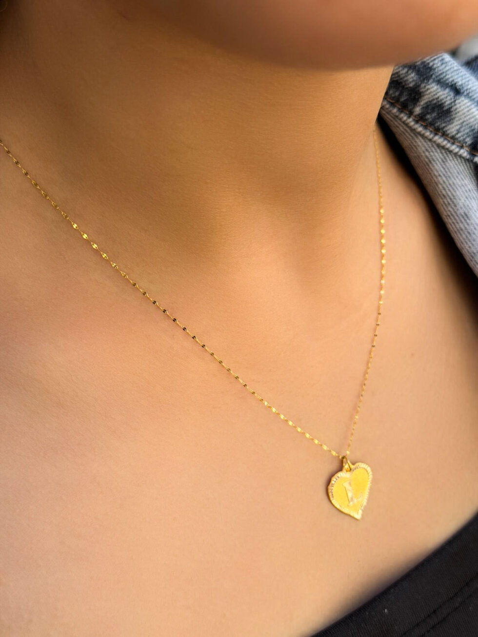 14 Ayar Altın L Harli Kalp Kolye