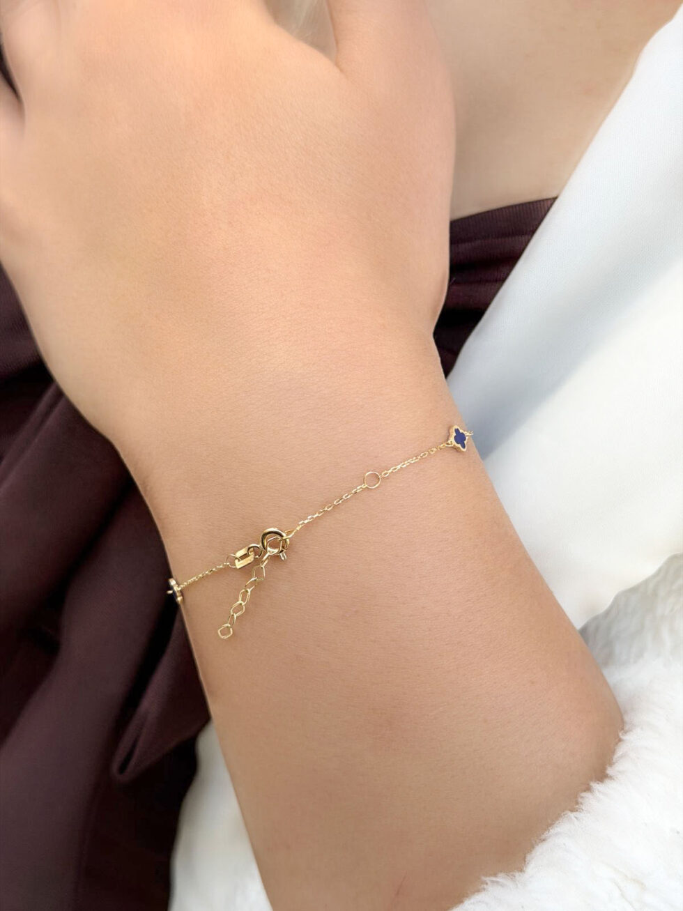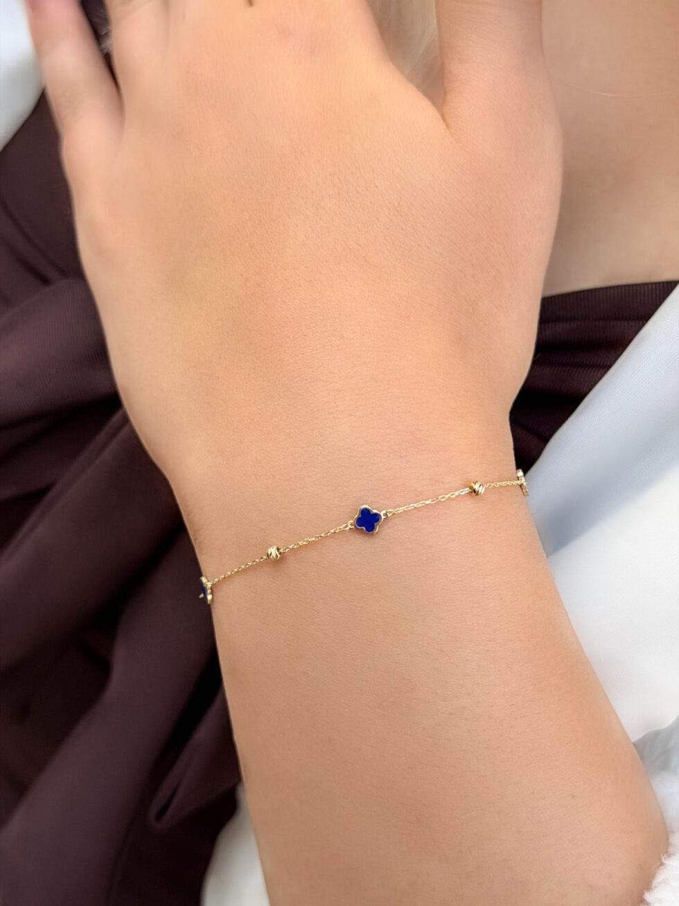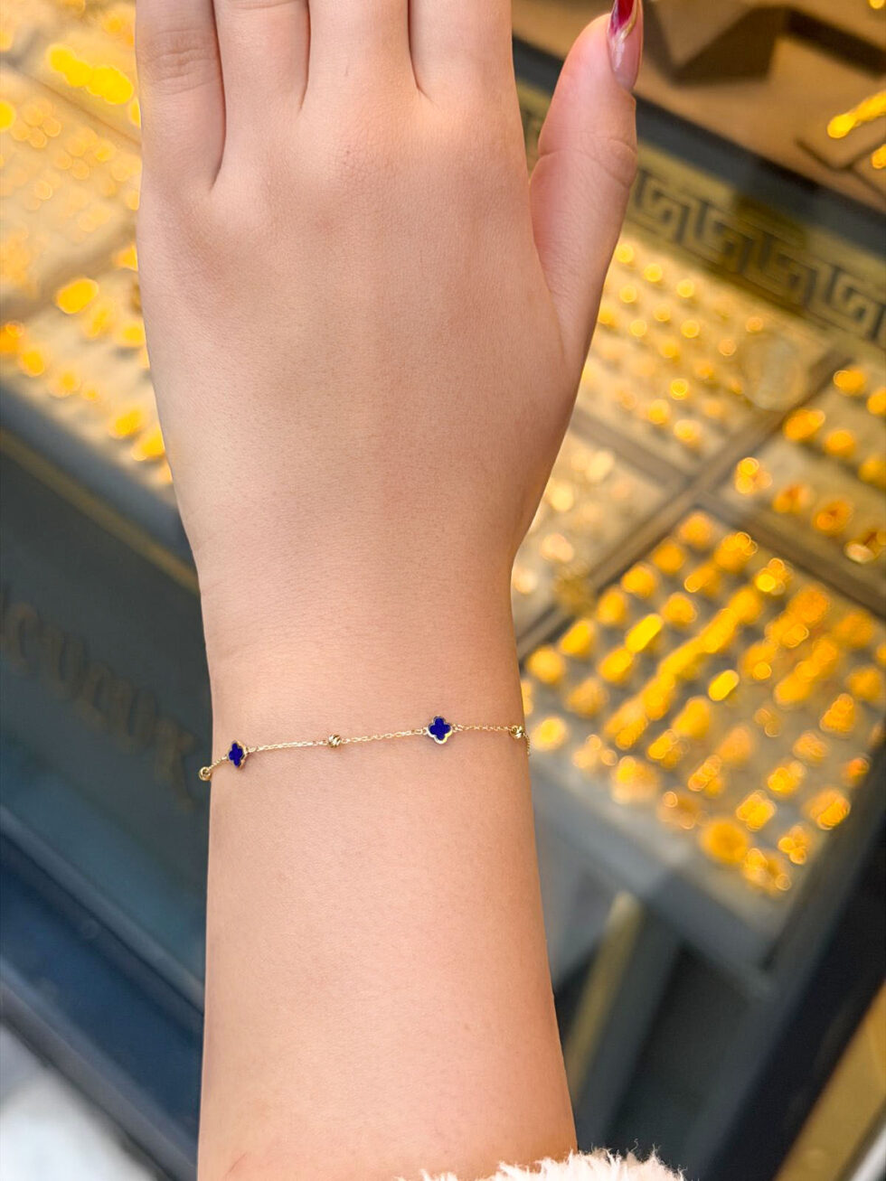 Bu ürün: 14 Ayar Altın Mavi Mineli Yonca Bileklik