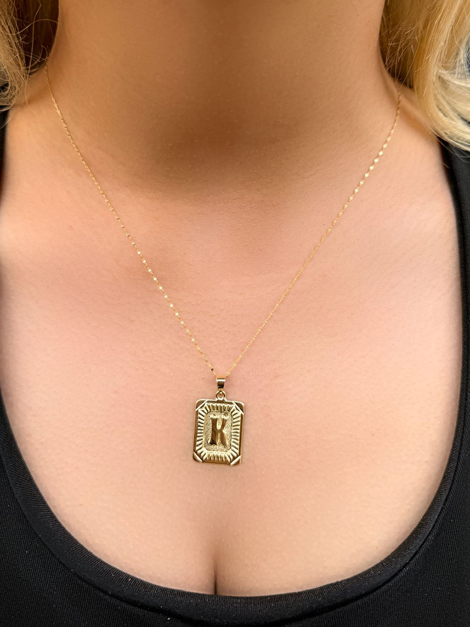 14 Ayar Altın K Harfli Nostalji Kolye