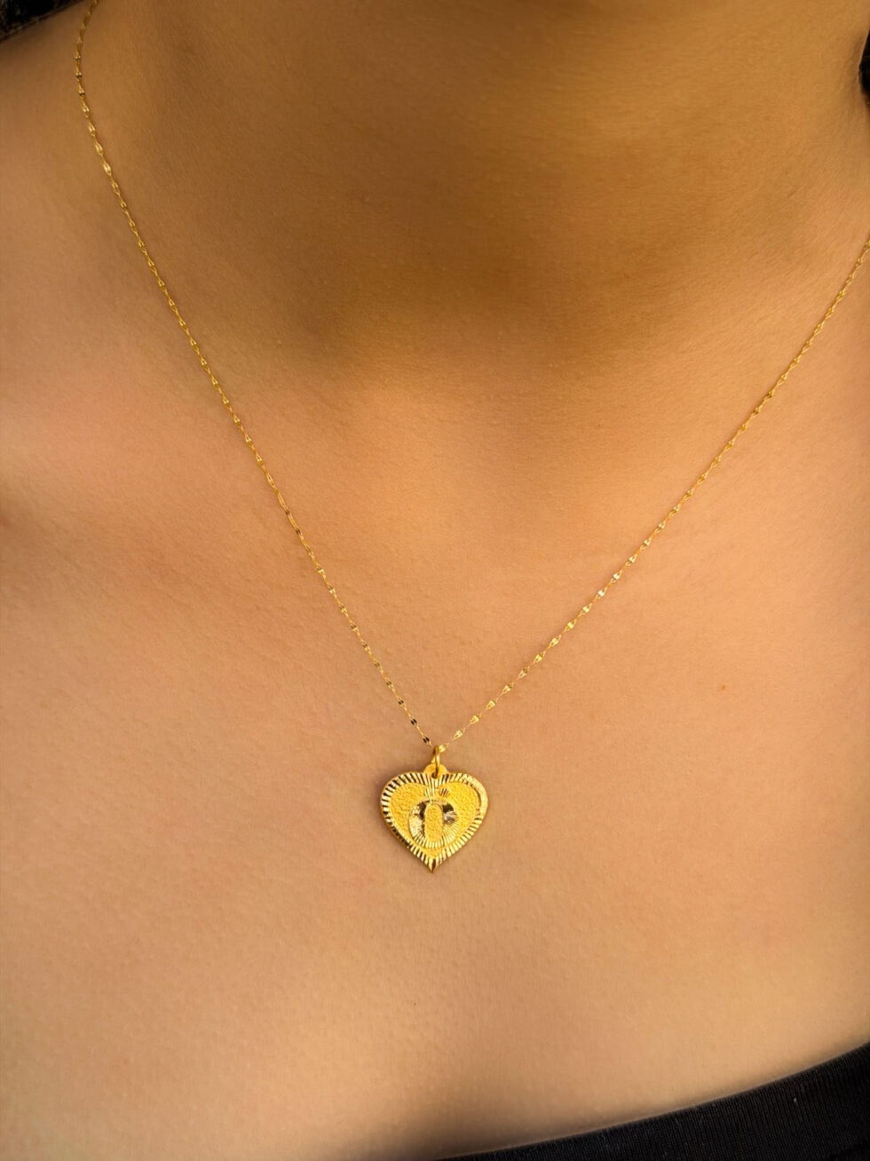 14 Ayar Altın Ö Harli Kalp Kolye
