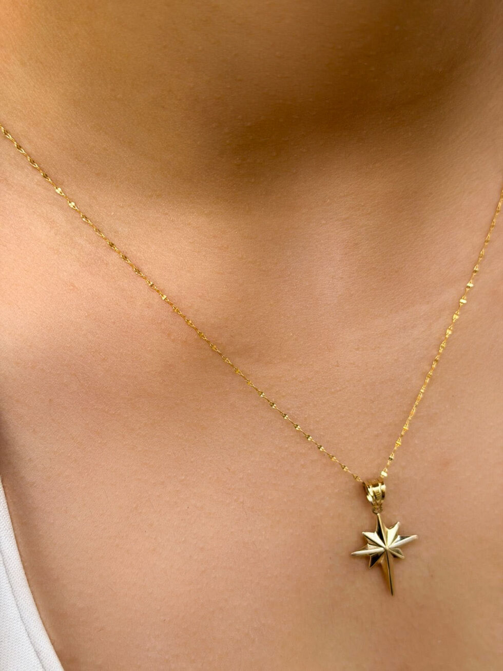 14 Ayar Altın Orta Boy Kuzey Yıldızı Kolye