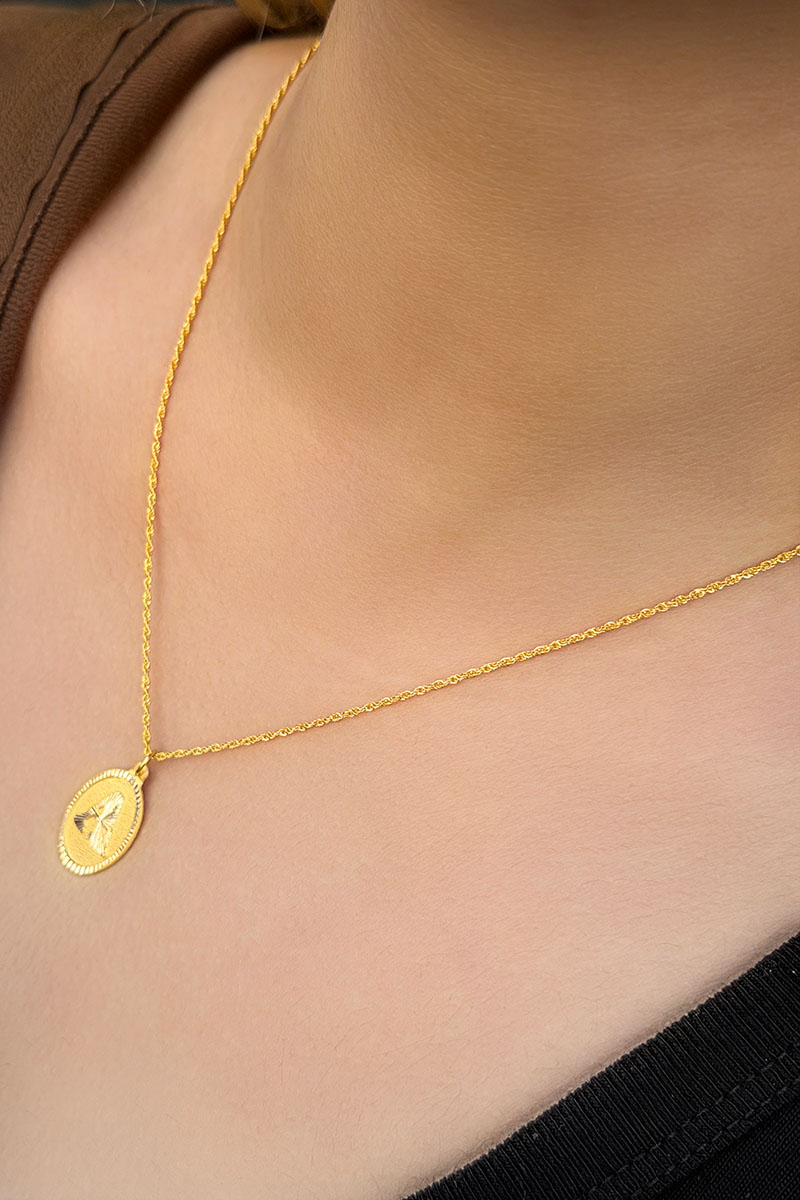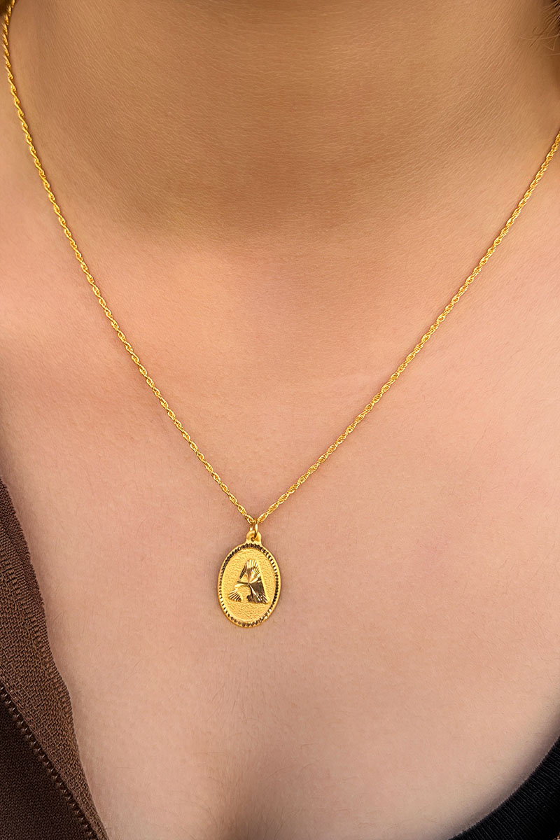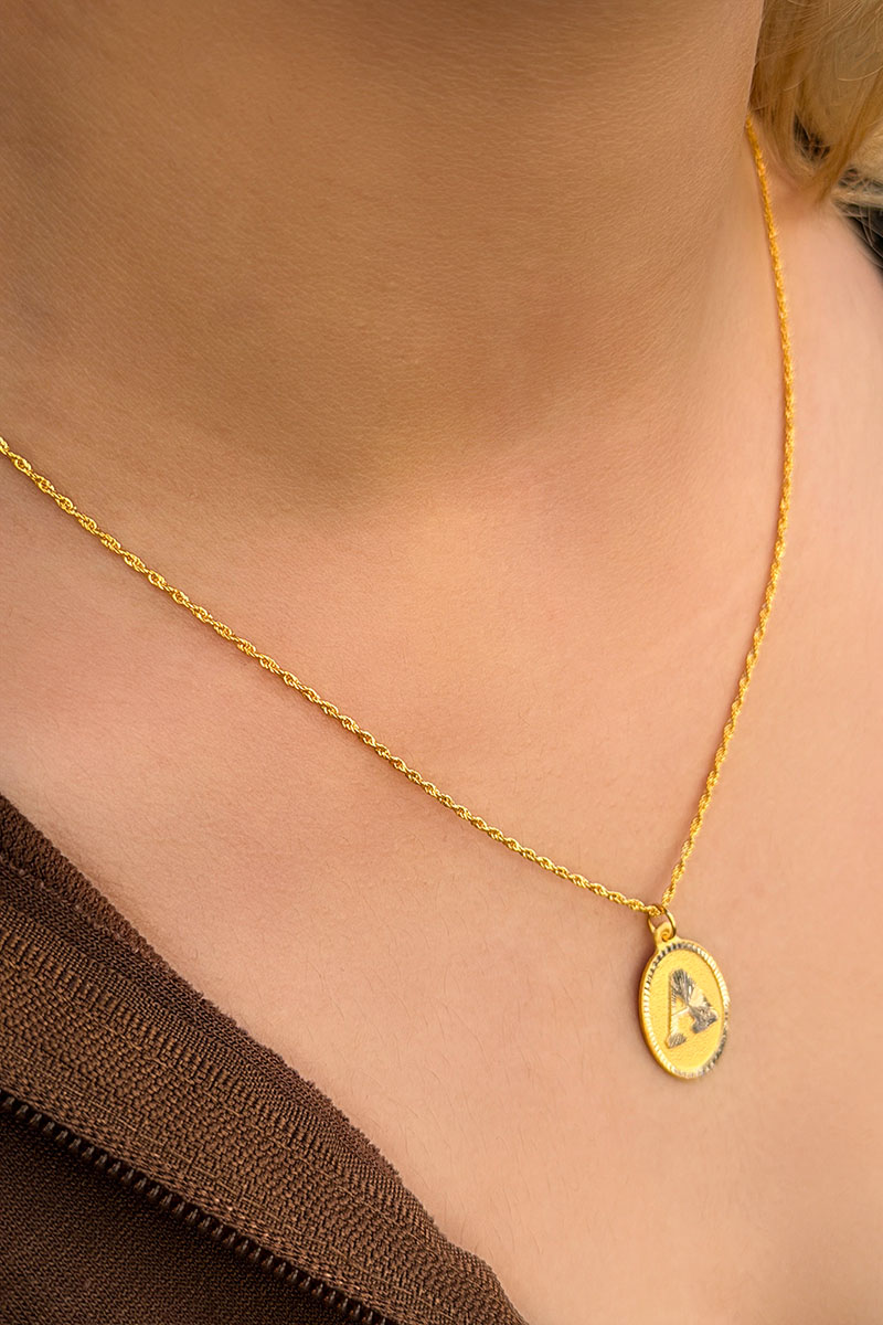 14 Ayar Altın Oval A Harfli Kolye