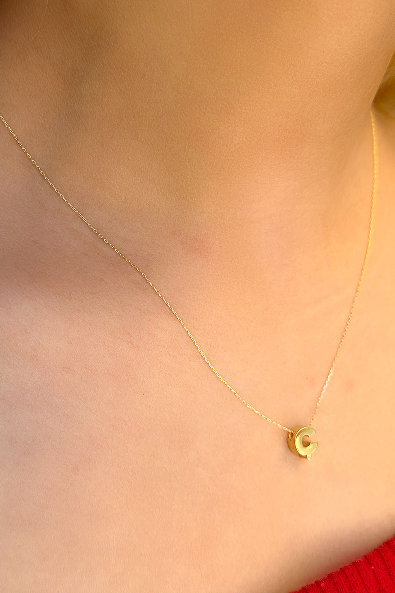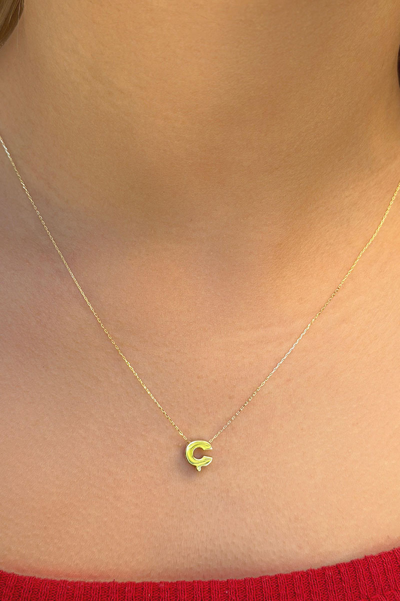 14 Ayar Altın 3 Boyutlu C Harfli Kolye