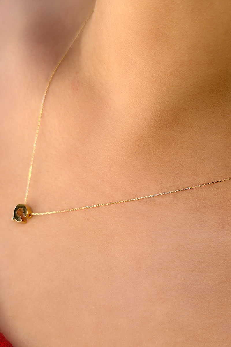14 Ayar Altın 3 Boyutlu Ç Harfli Kolye