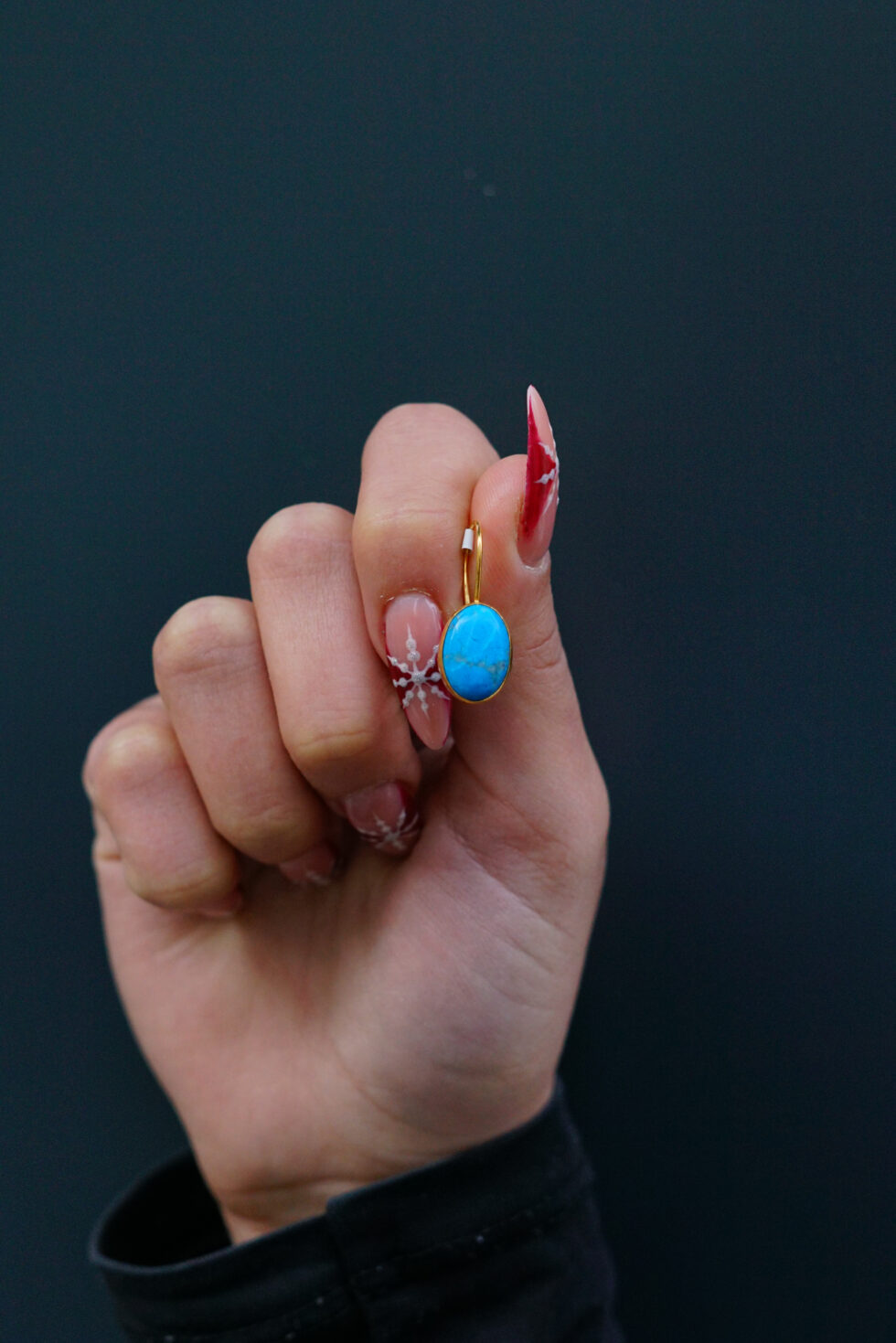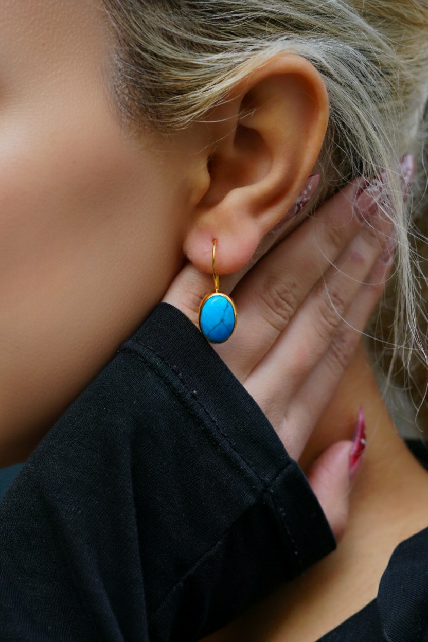 Bu ürün: 14 Ayar Altın Oval Firuze Küpe