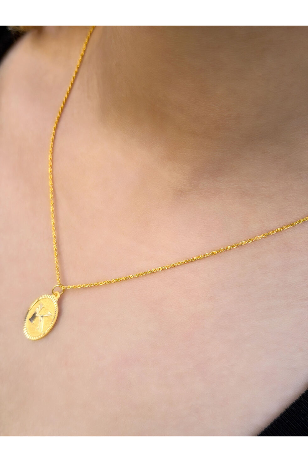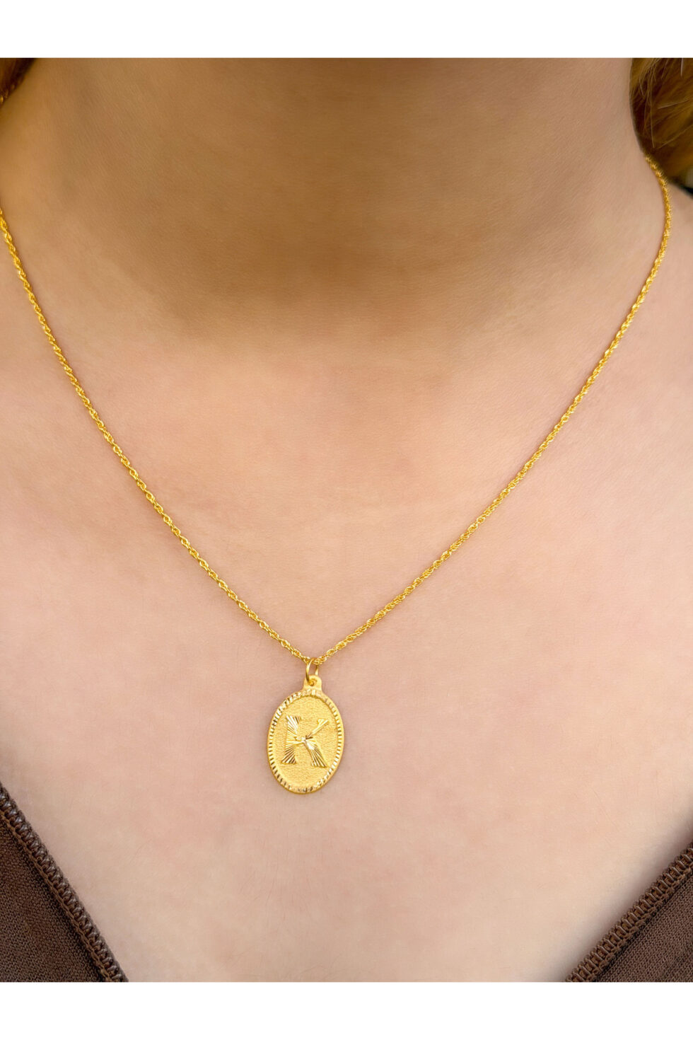 14 Ayar Altın Oval K Harfli Kolye