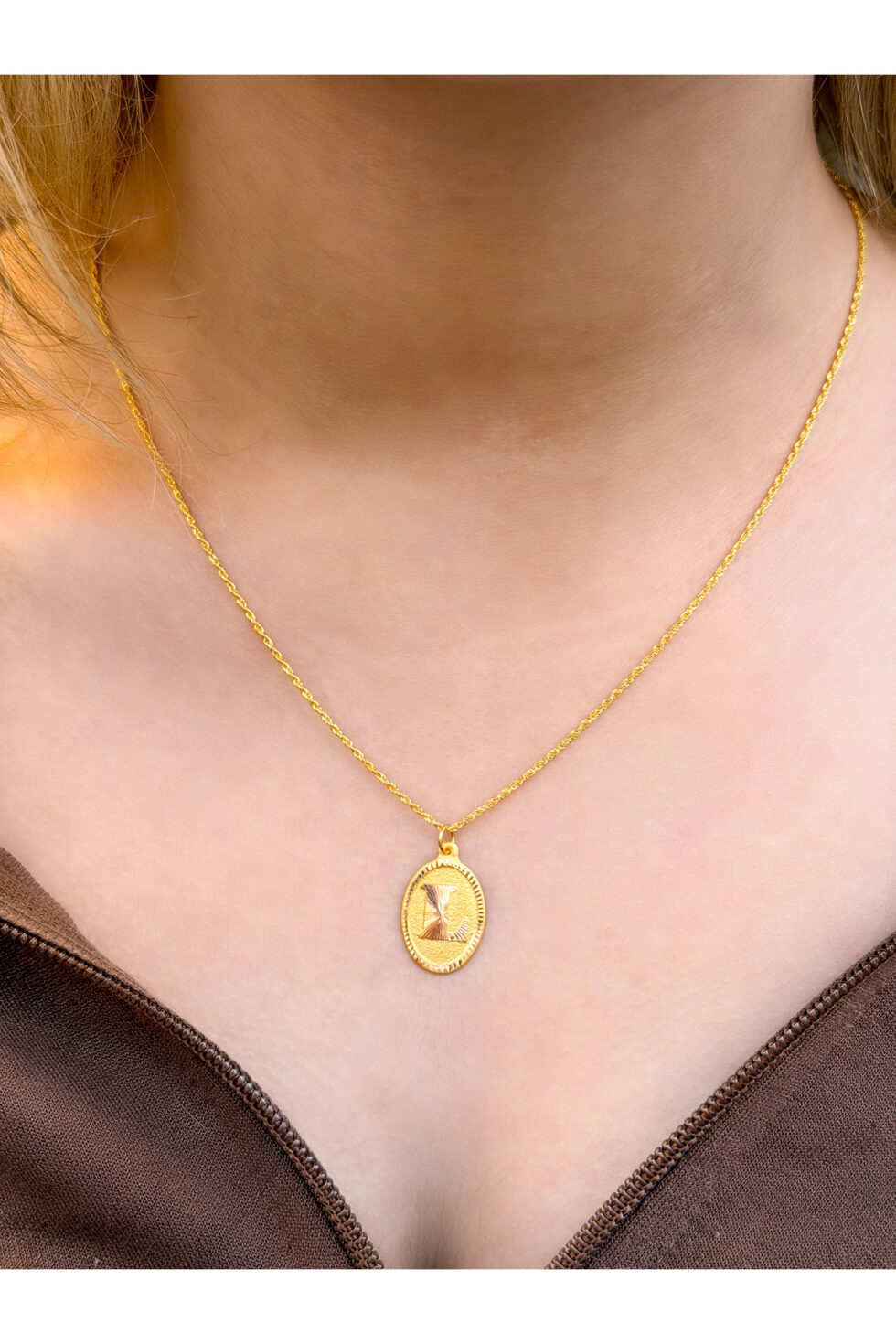 14 Ayar Altın Oval L Harfli Kolye