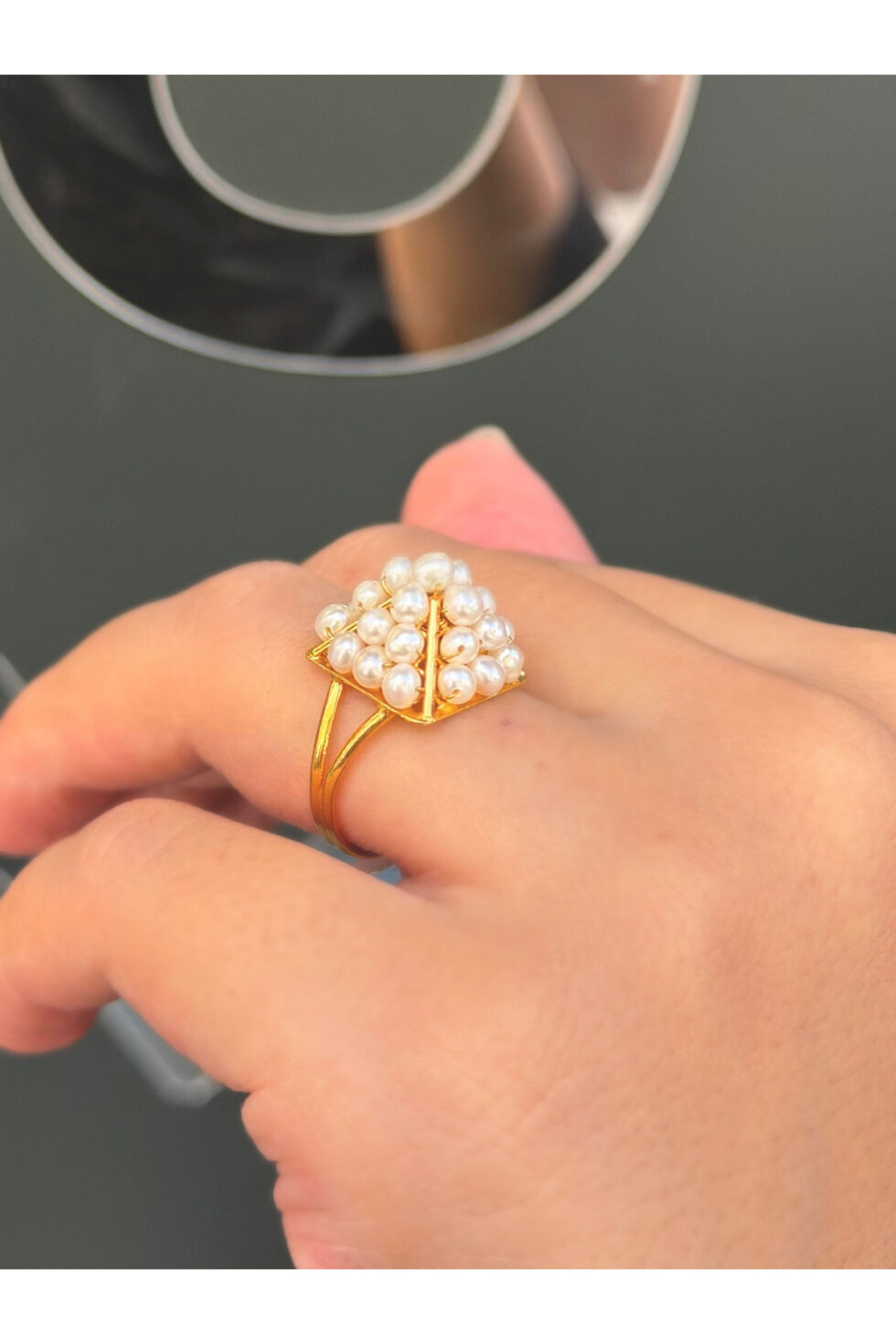 14 Ayar Altın Piramit İnci Yüzük