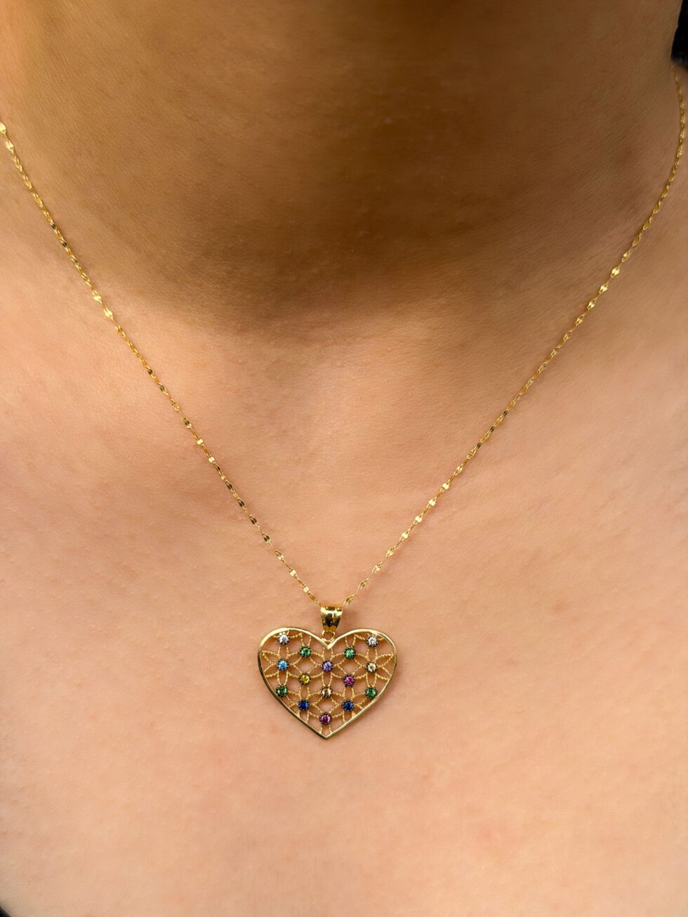 14 Ayar Altın Renkli Taşlı Kalp Kolye
