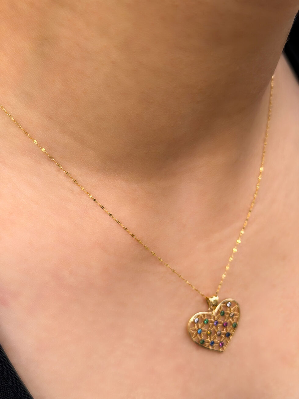 Renkli Taşlı Kalp Kolye