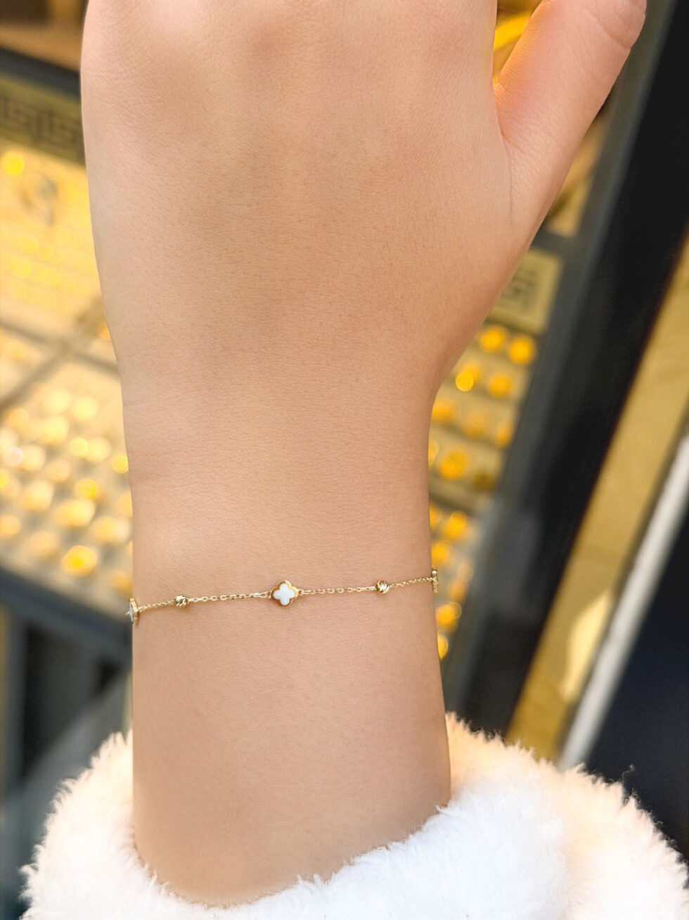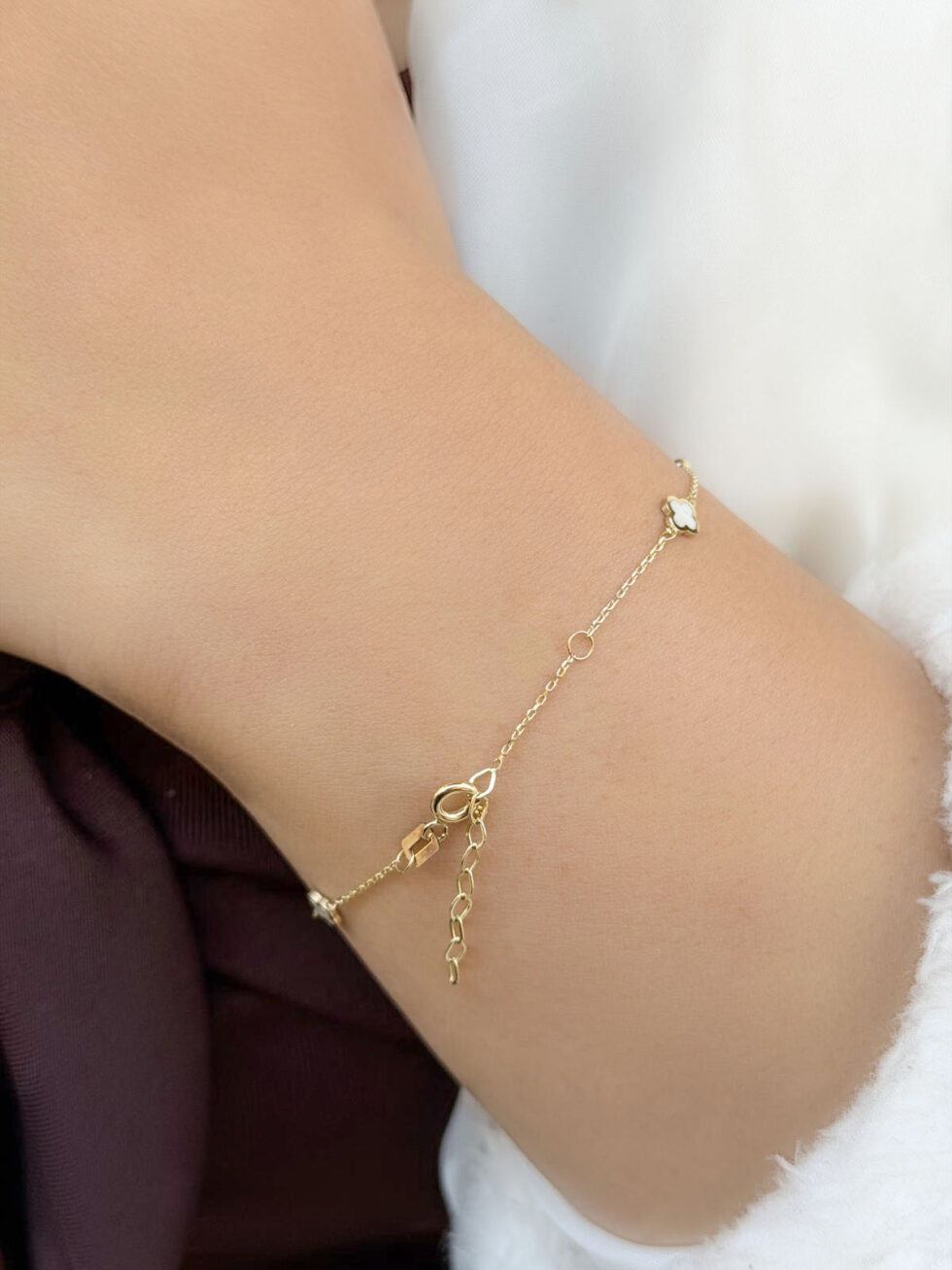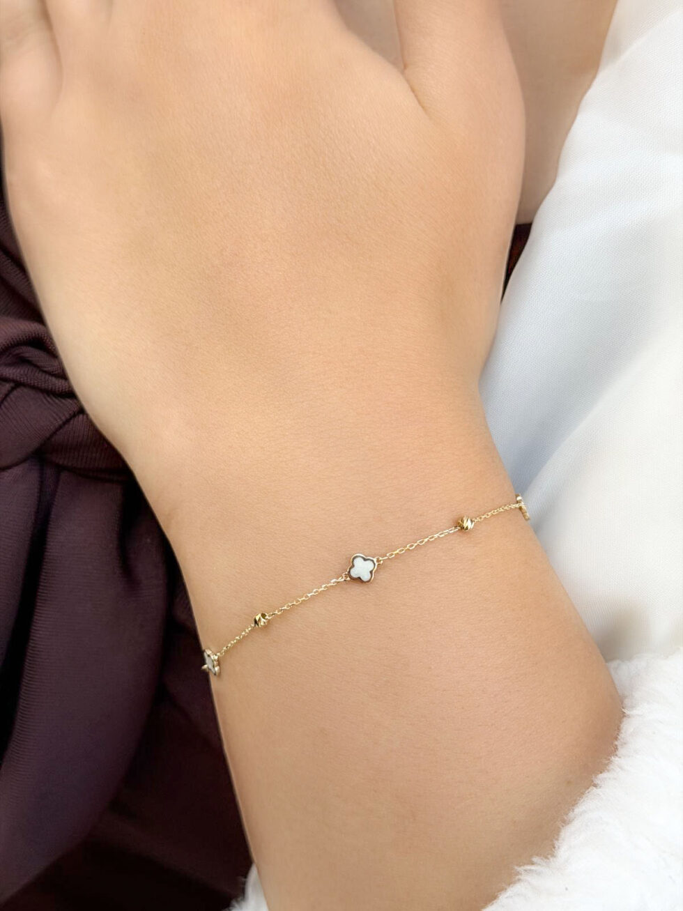 Bu ürün: 14 Ayar Altın Sedef Mineli Yonca Bileklik