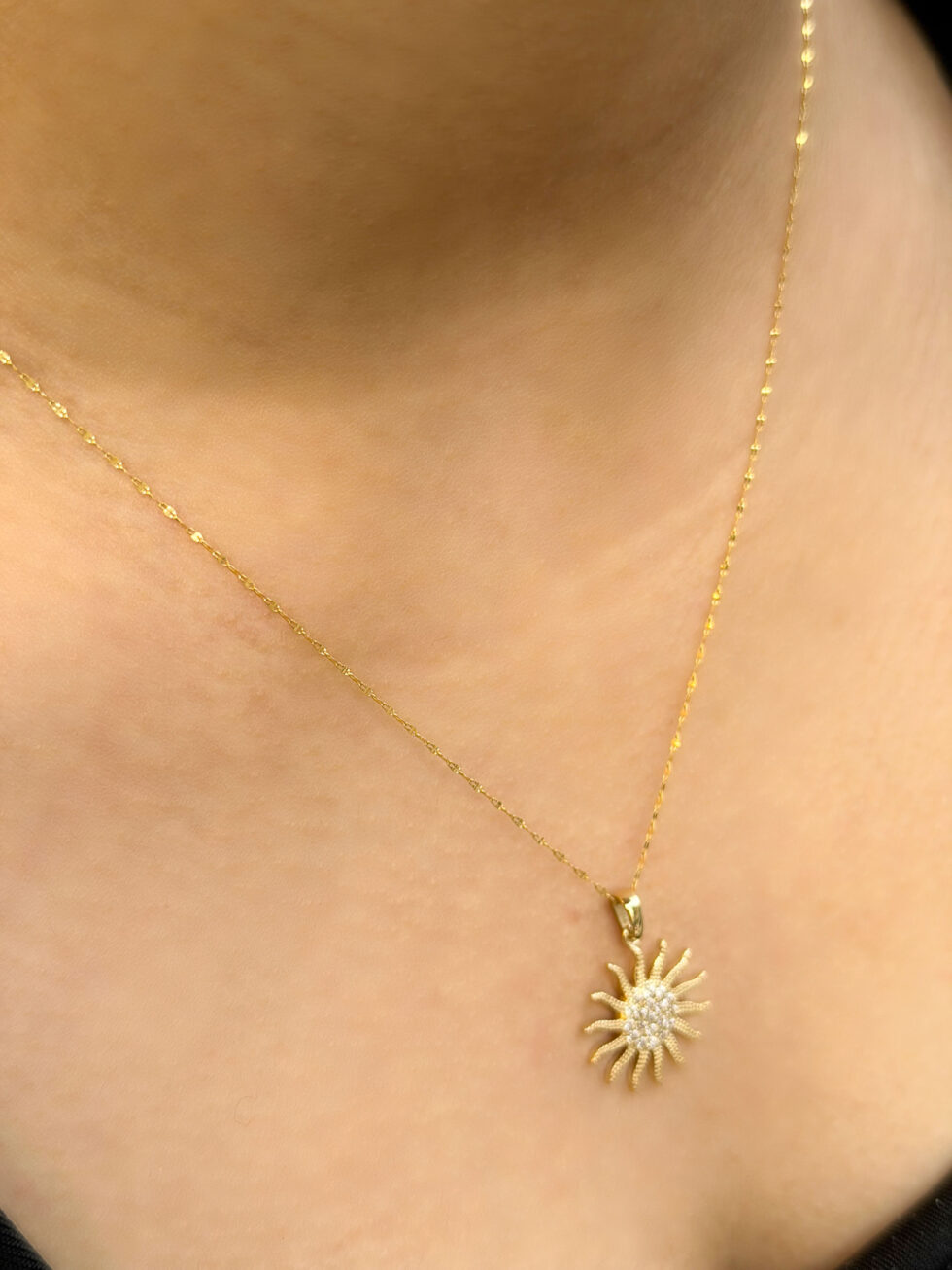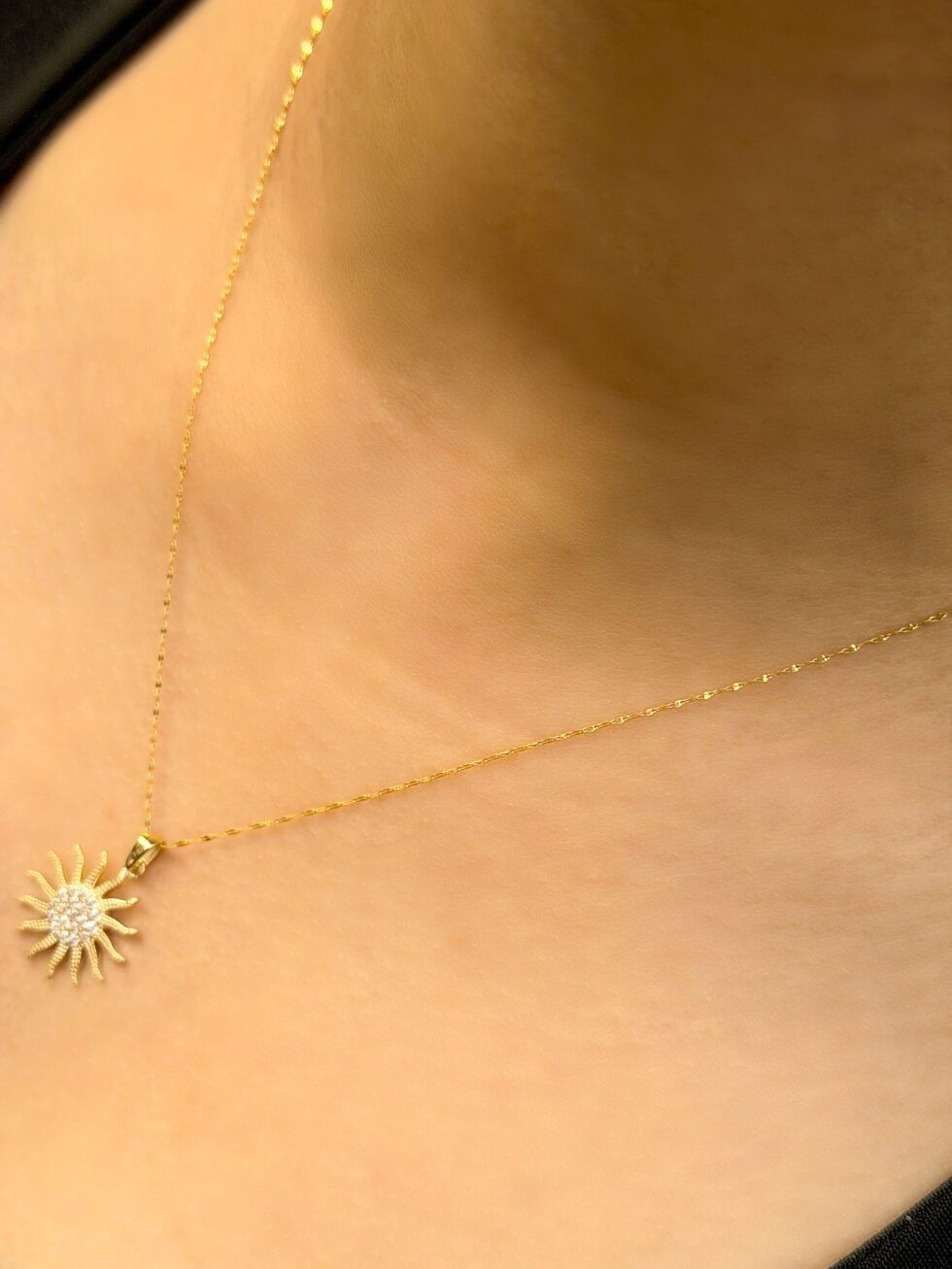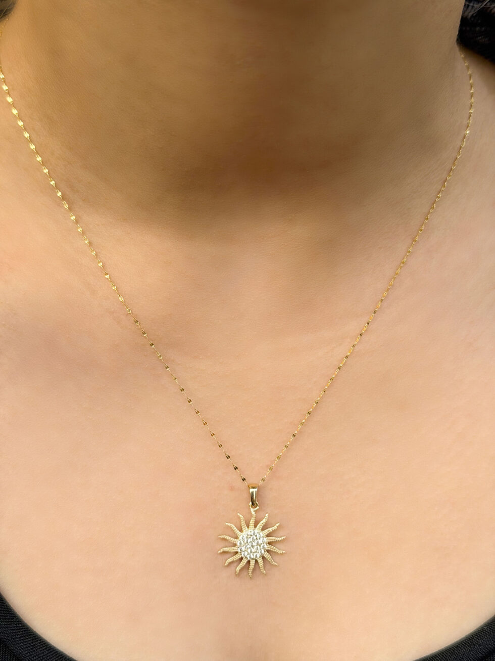 14 Ayar Altın Taşlı Desenli Güneş Kolye