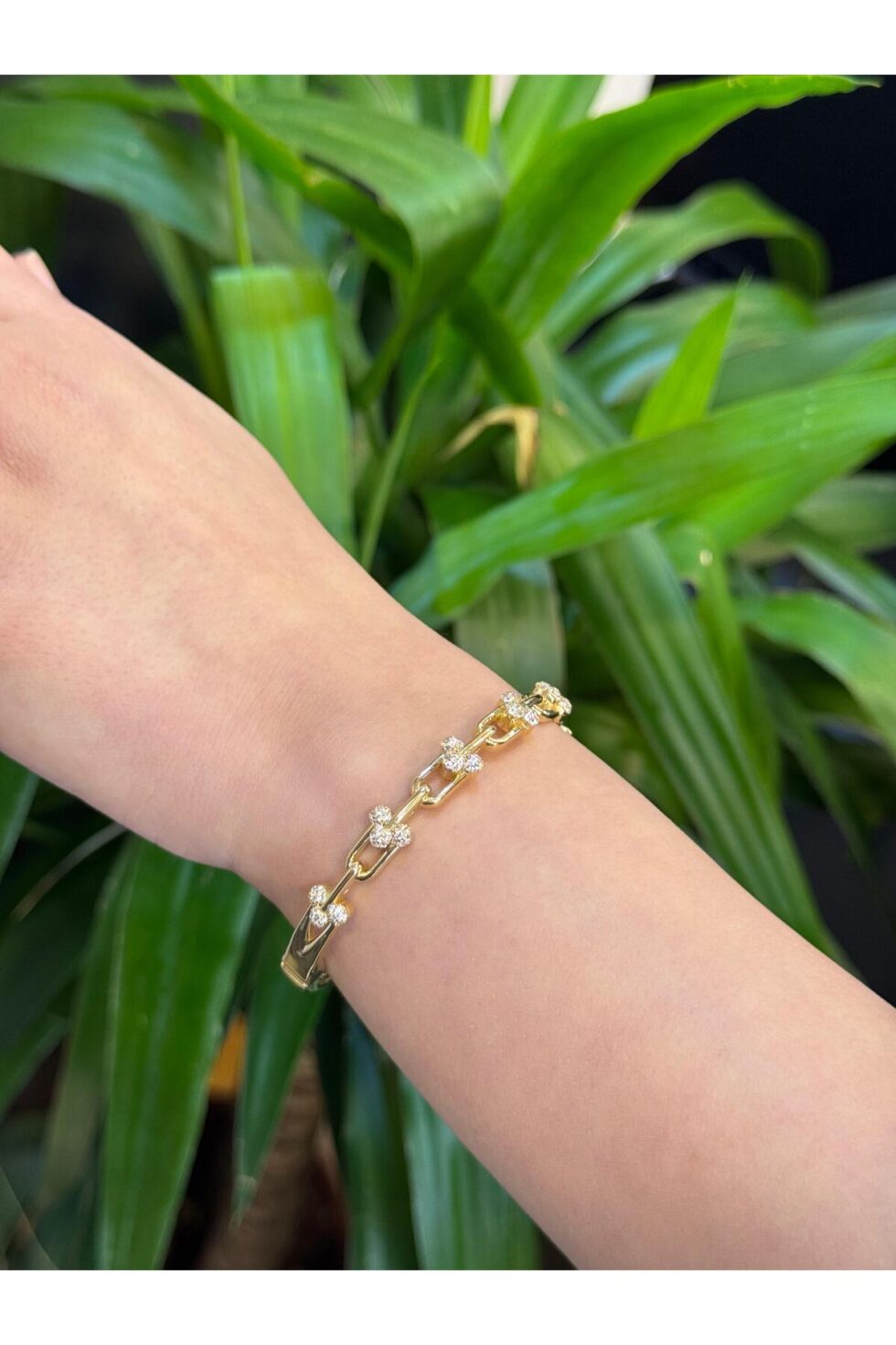 14 Ayar Altın Taşlı Tifffanyy Kelepçe Bileklik