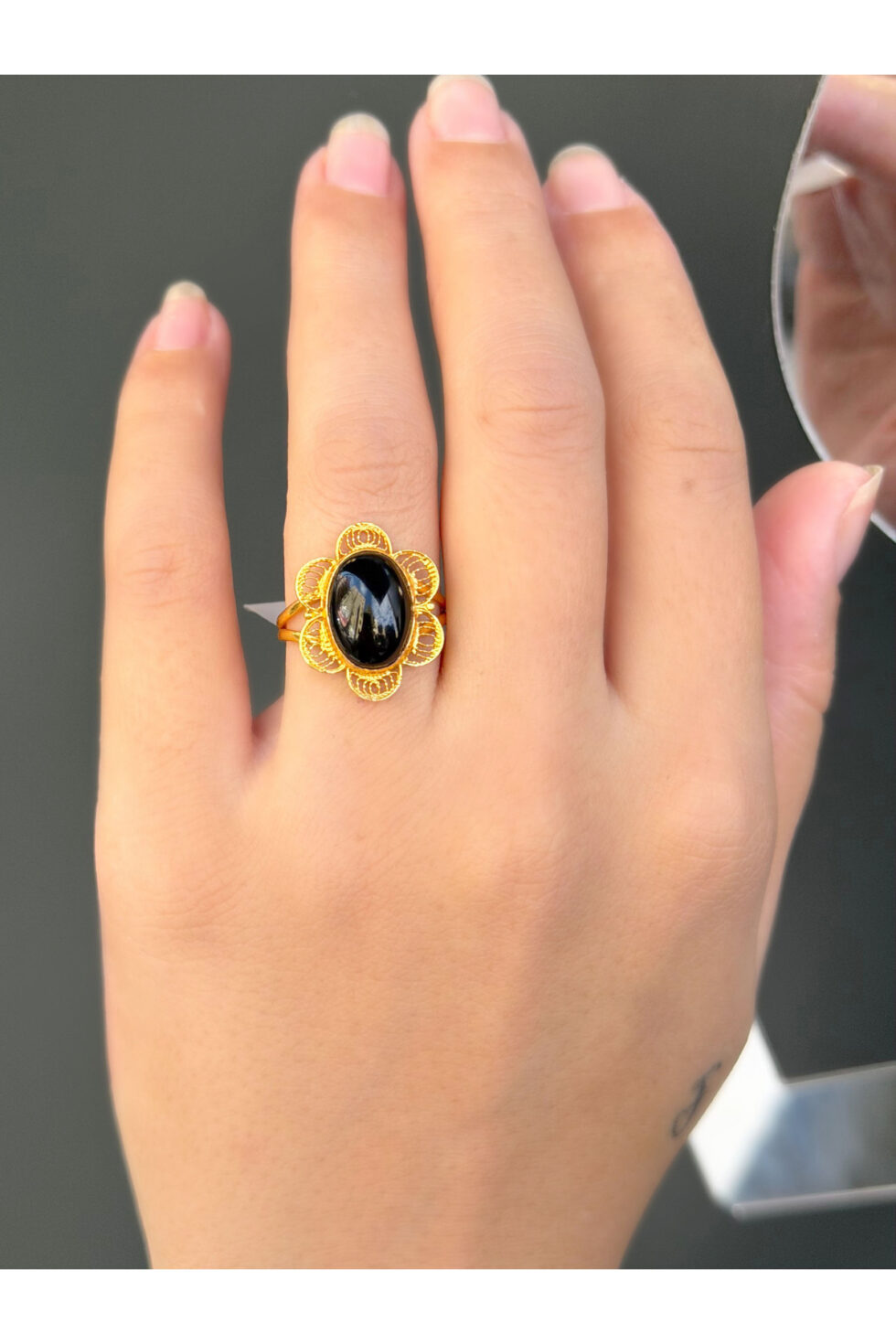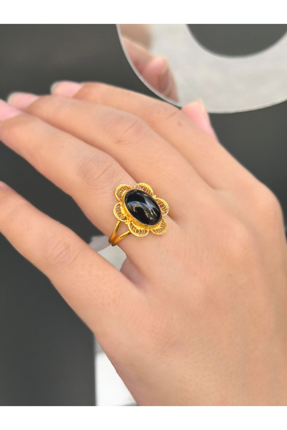 14 Ayar Altın Telkari Onix Taşlı Yüzük