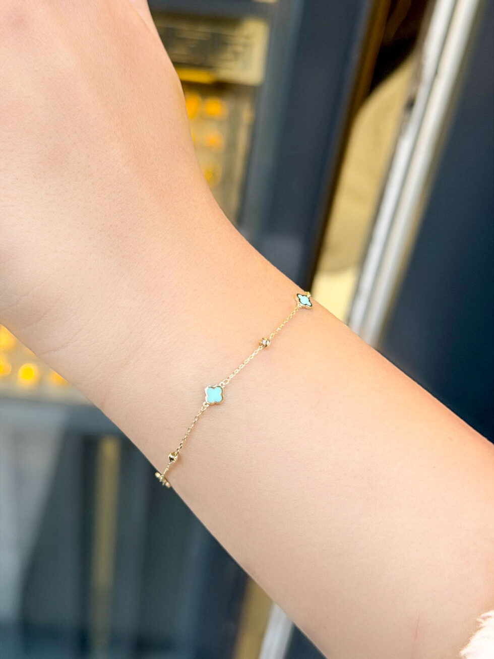 - 14 Ayar Turkuaz Mineli Yonca Bileklik