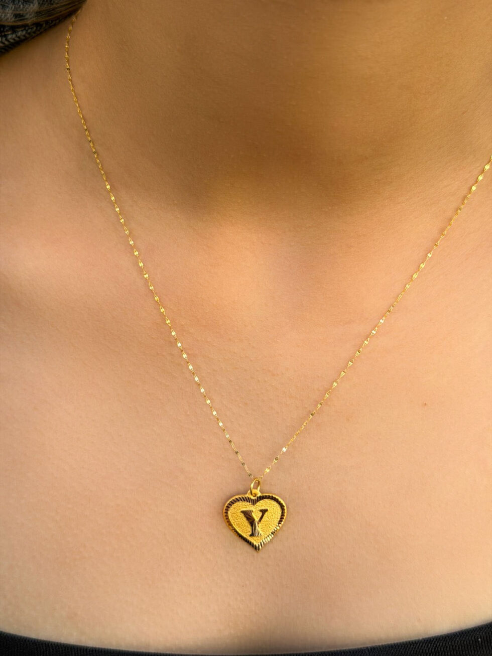 14 Ayar Altın Kalpli Y Harfli Kolye