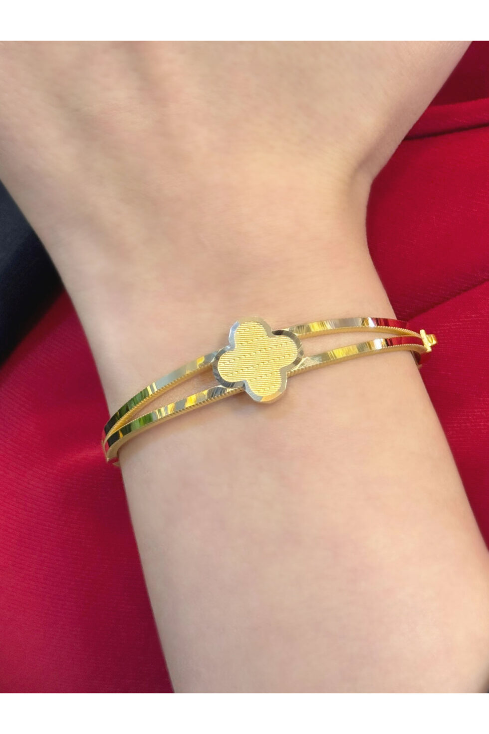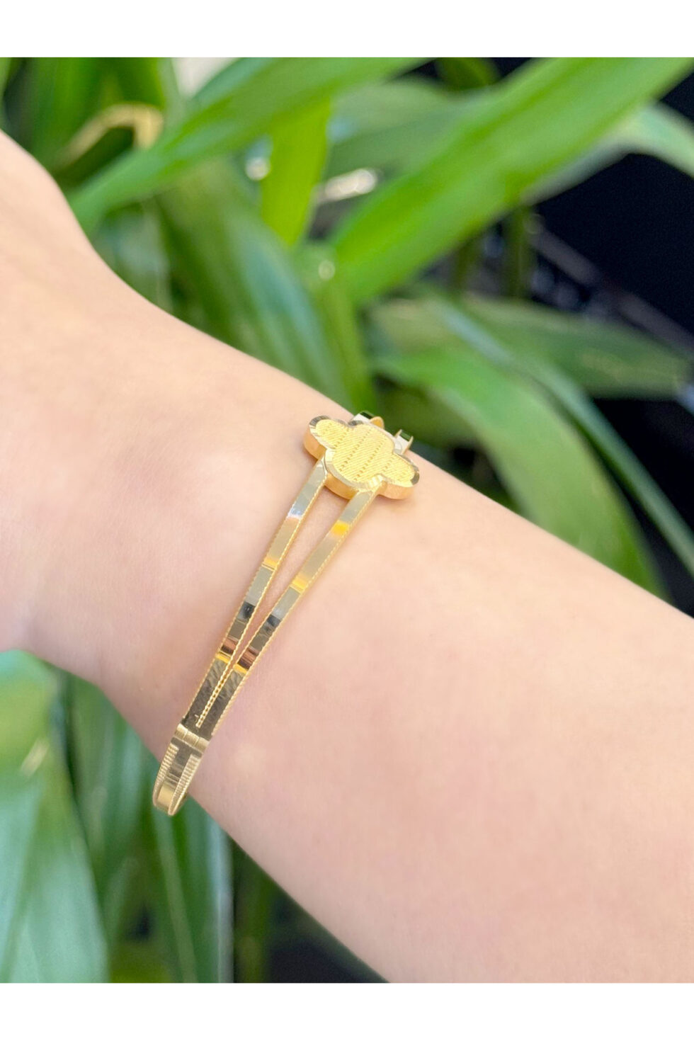 14 Ayar Altın Yonca Ajda Kelepçe Bileklik