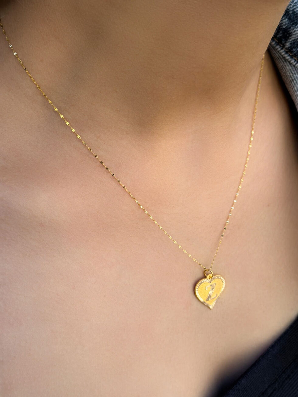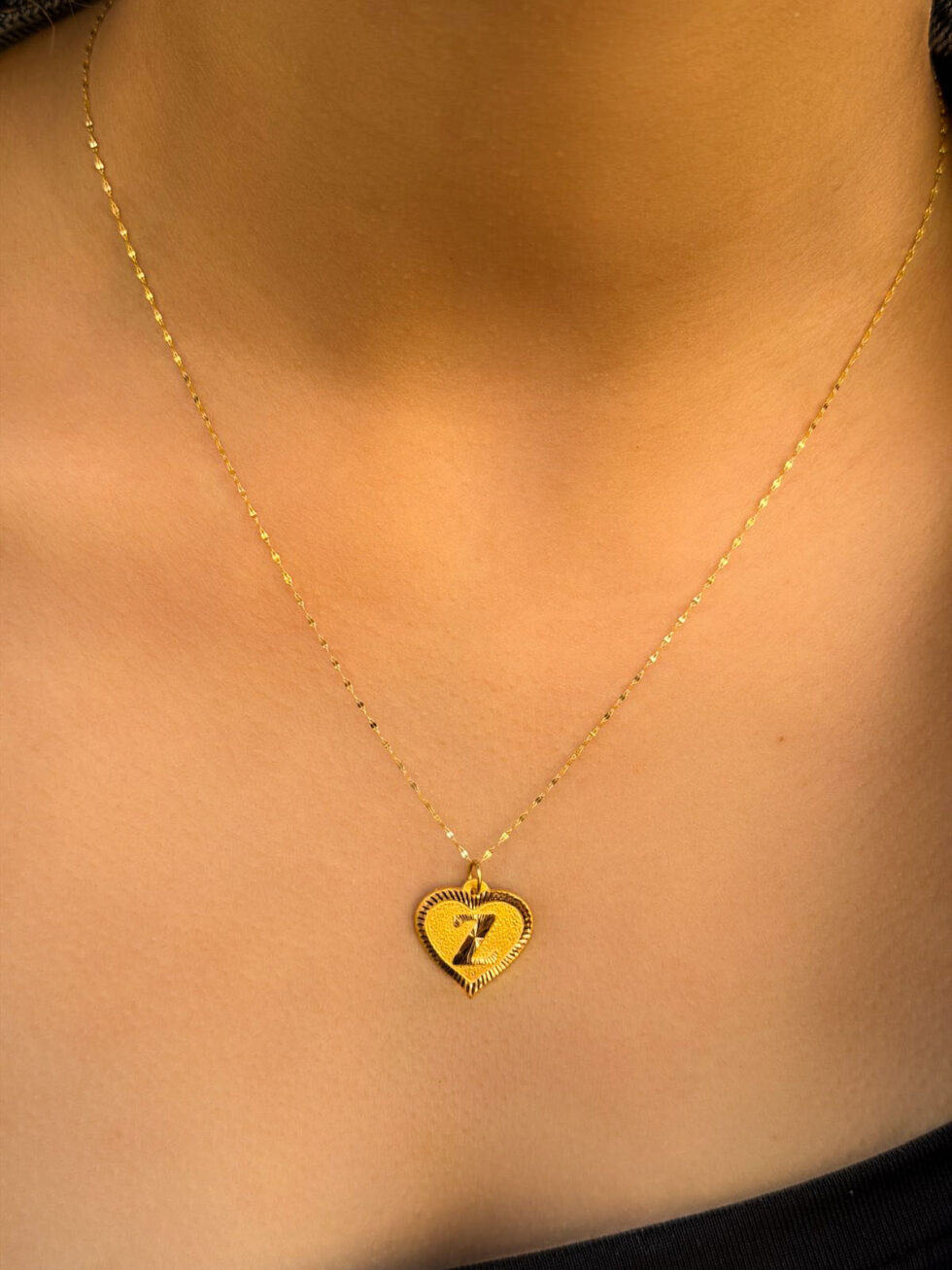 14 Ayar Altın Kalpli Z Harfli Kolye
