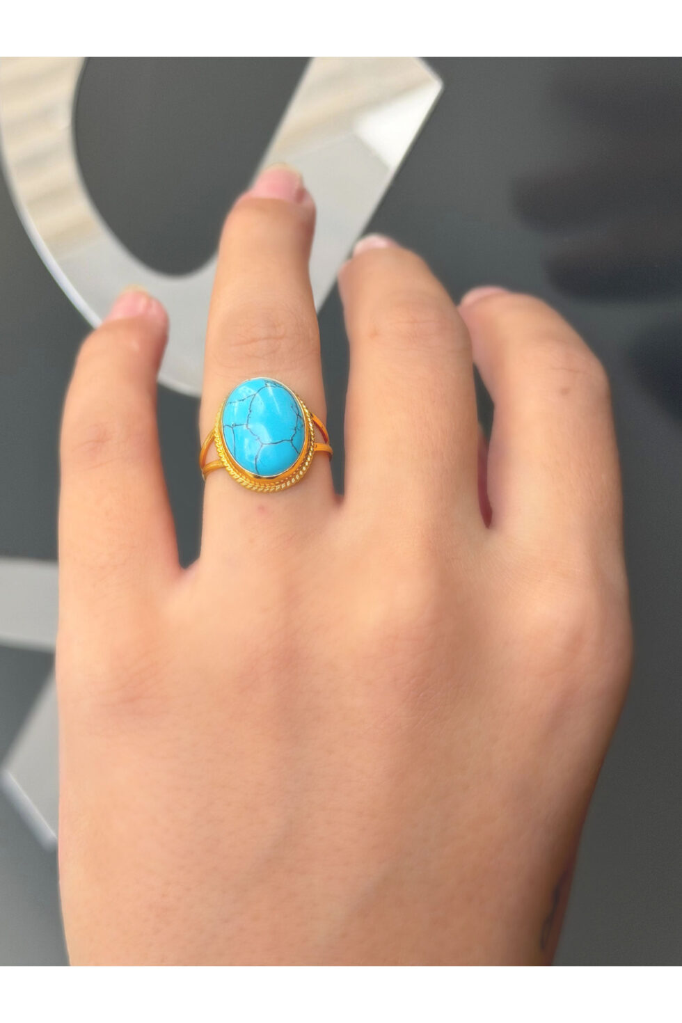 14 Ayar Altın Zemberek Damarlı Firuze Taşlı Yüzük