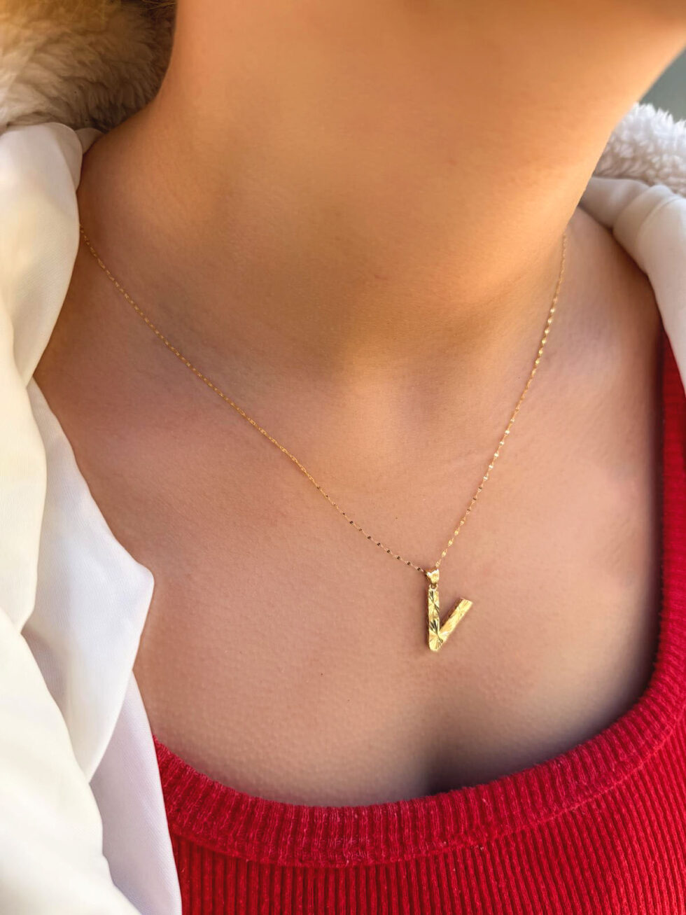 Bu ürün: 14 Ayar Füzyon V Harfli Kolye