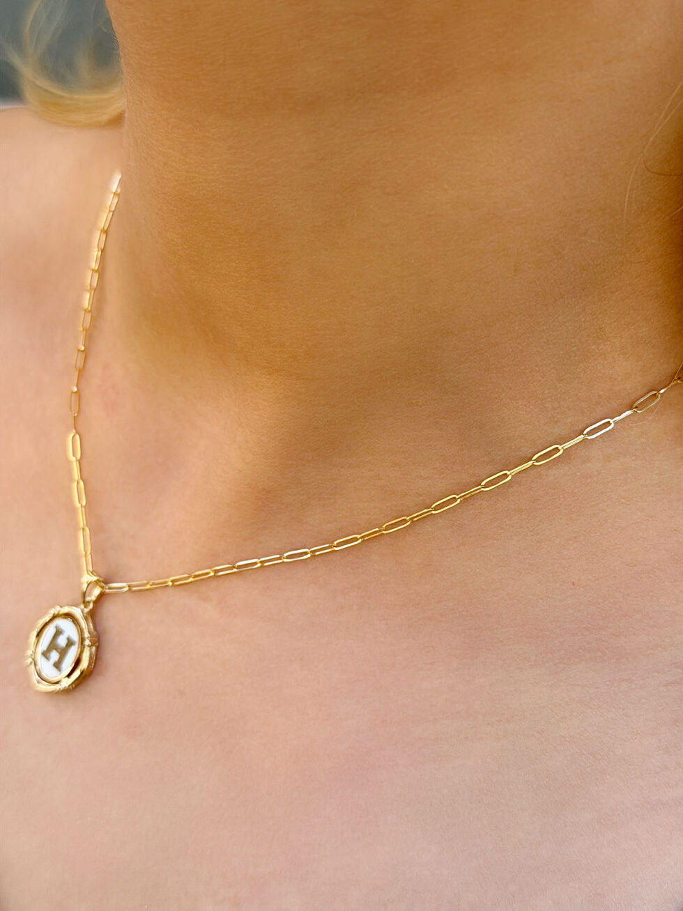 14 Ayar Retro H Harfi Kolye