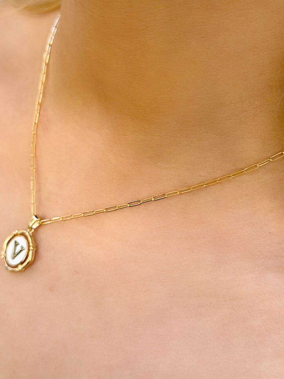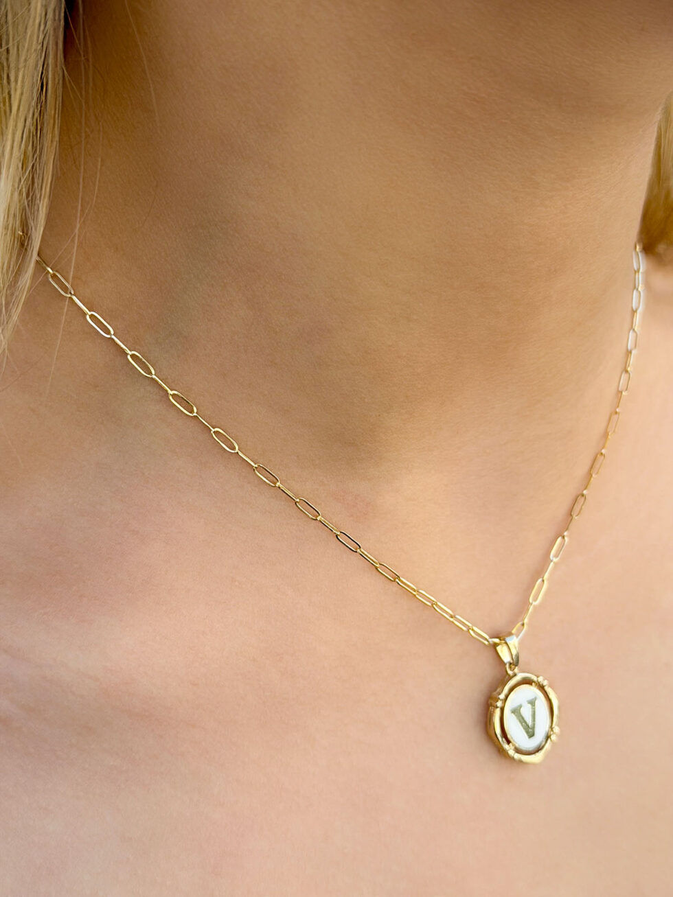 V Harfli Retro Kolye